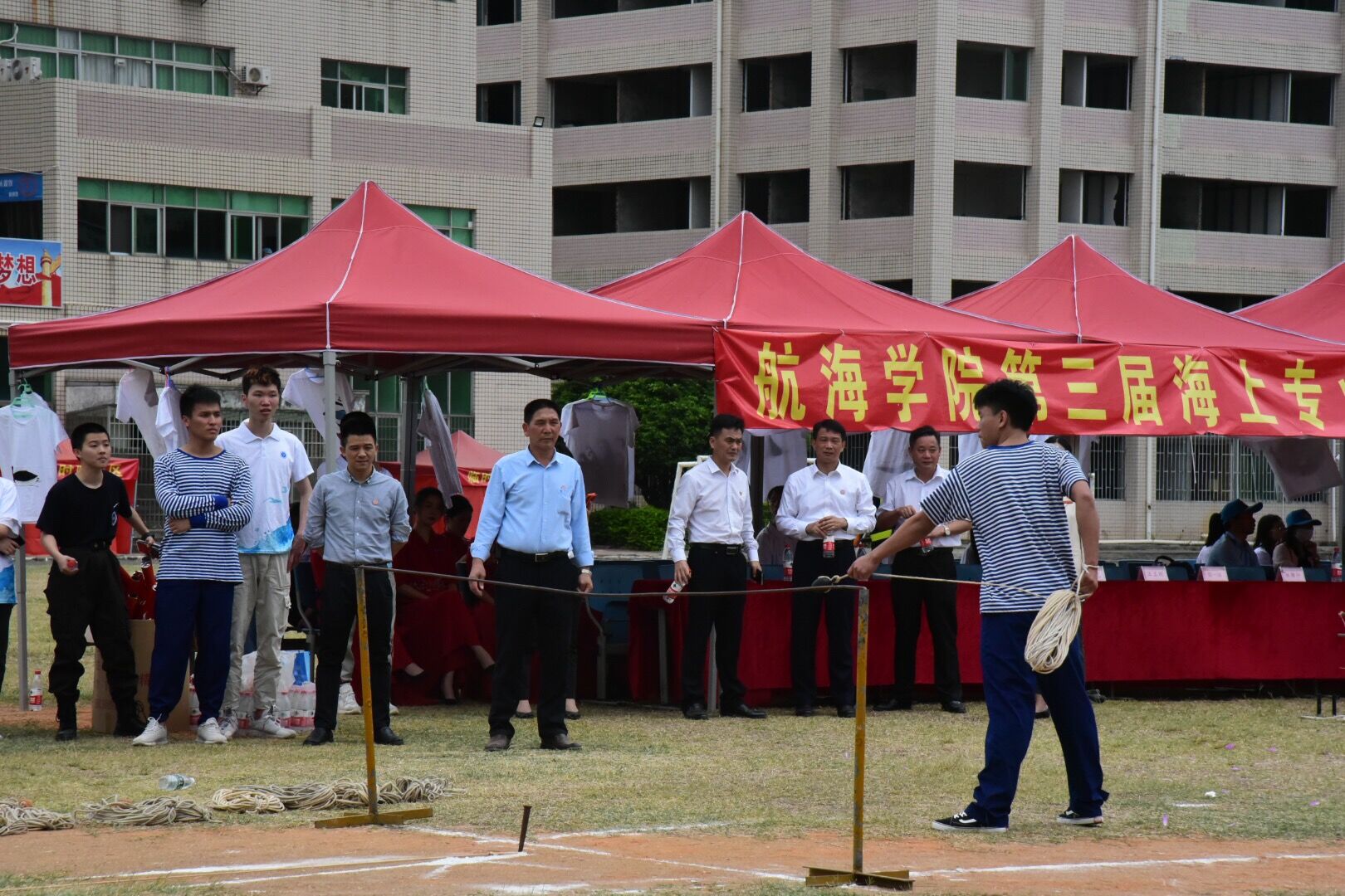 据悉,本次海洋文化节中设置了航海绳结、撇缆、团队消防、个人消防、金工工艺、港口集装箱运营知识、国际货物通关、企业沙盘模拟经营等专业技能竞赛,竞赛现场精彩纷呈。与此同时,航海学院开放了大型船舶操纵体验区、轮机模拟器参观区、诚毅船模参观区等项目,布置了海丝结文创品展区、海洋文化衫展区,吸引校友、老师、同学们参观体验。