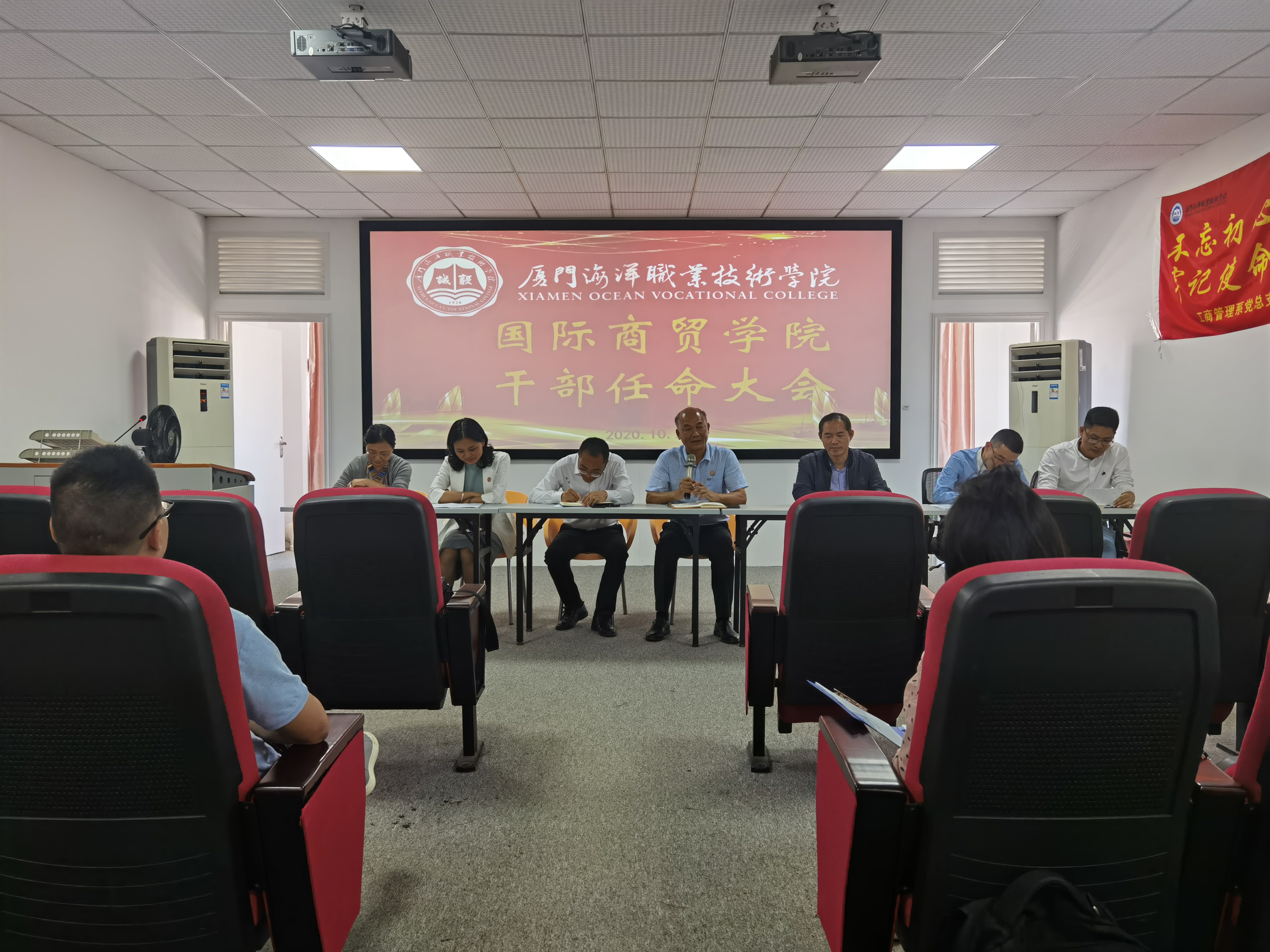 10月26日下午,国际商贸学院召开干部任命大会,宣布国际商贸学院领导班子成员任命决定。校党委副书记汤忠民出席,国际商贸学院副院长徐薇主持会议。