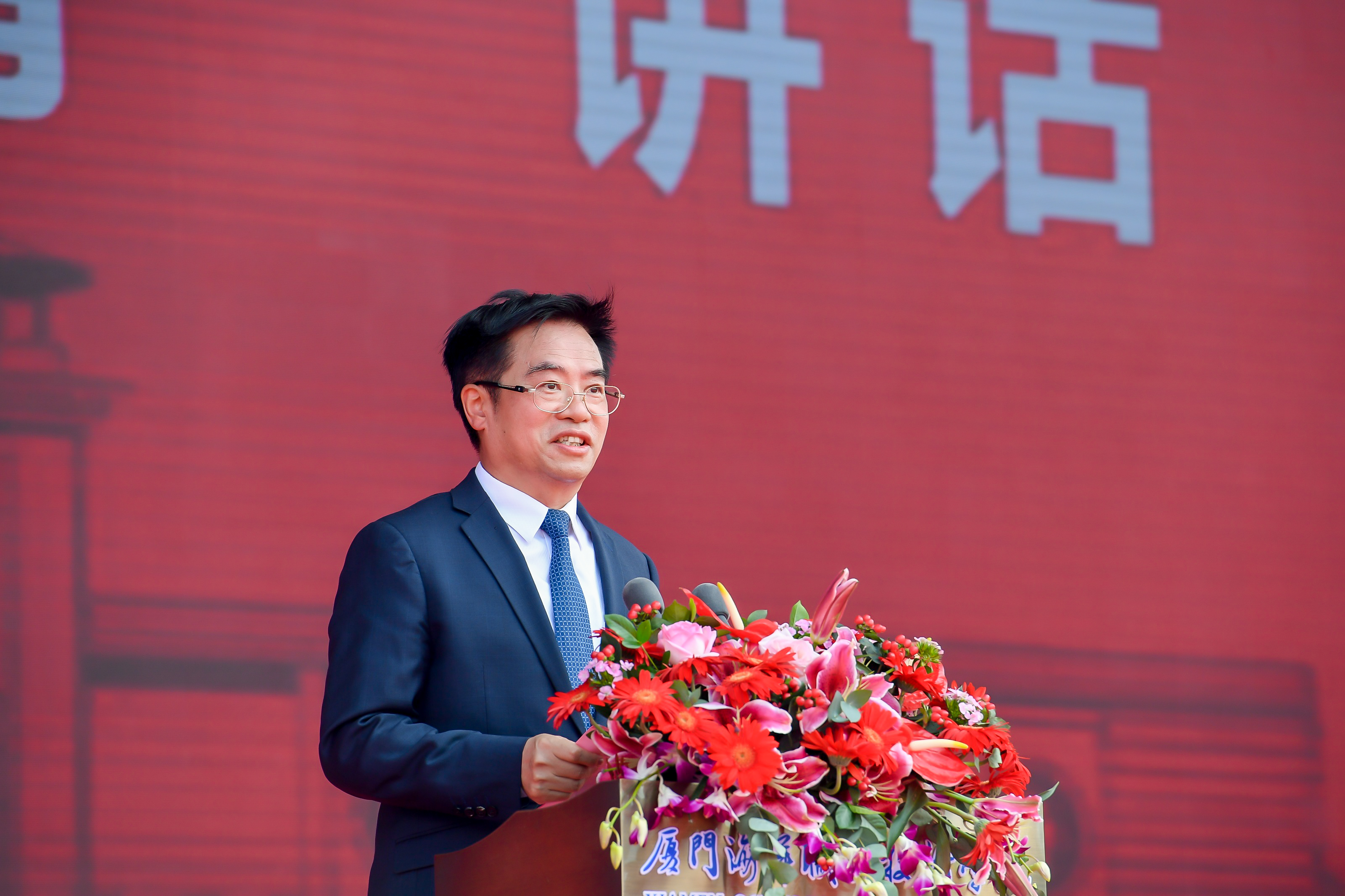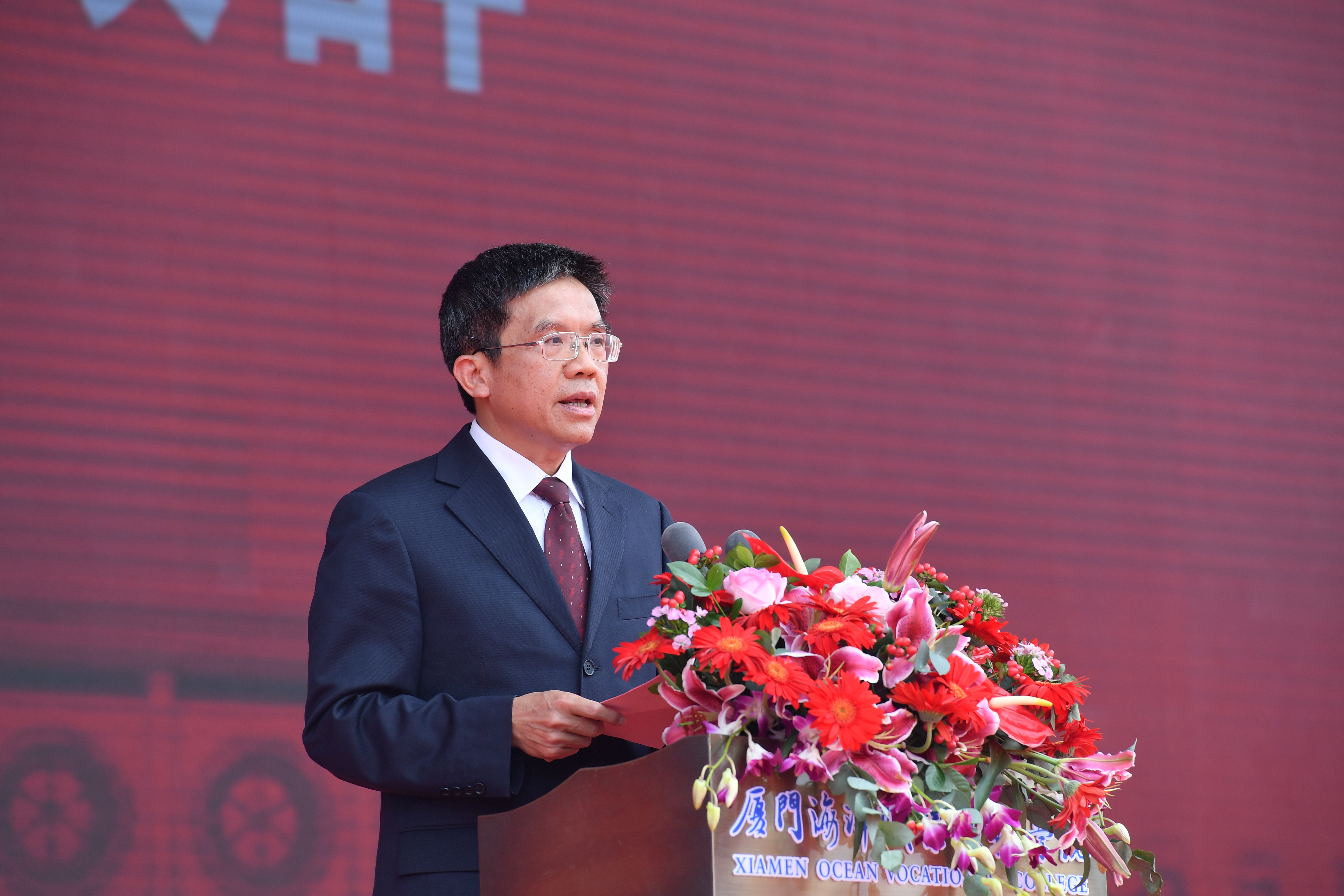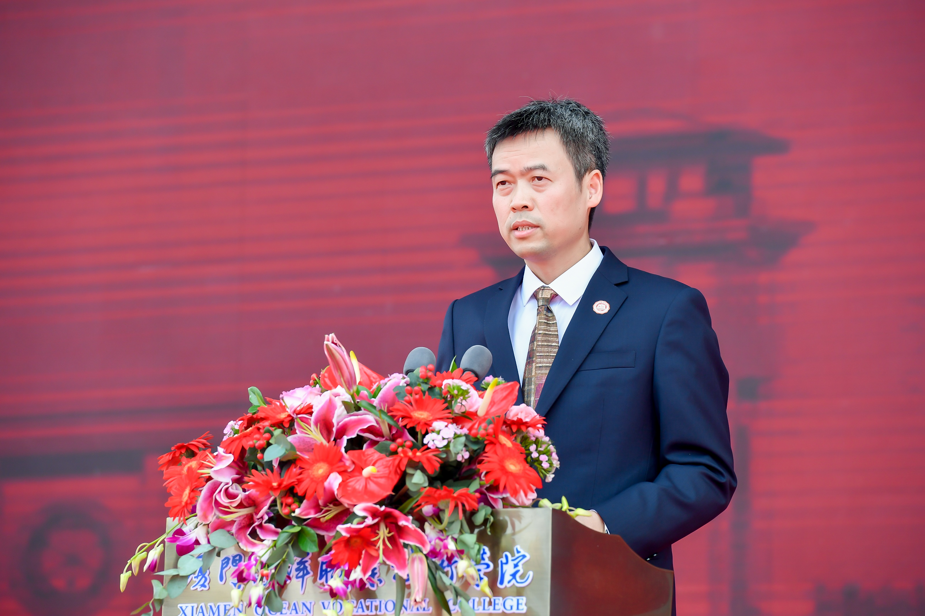 集美大学校长李清彪代表兄弟高校致辞。他说,集美大学与厦门海洋职业技术学院同根同源、文脉相通,我们拥有共同的校主、校训和一段共同的校史。1920年校主陈嘉庚先生创办了厦门海洋职业技术学院与集美大学航海教育共同的前身——集美学校水产科。1958年水产航海分开办学,分别成立了集美水产学校和集美航海学校,从此两校进入兄弟登山、守望互助的新发展阶段。进入新时期,厦门海洋职业技术学院坚持服务海洋、服务地方,坚持质量立校,探索创新,持续推进内涵式发展、高水平发展,学校从福建省首批国家级重点中专学校发展成为教育部国防教育特色学校、福建省示范性高职院校、福建省示范性现代职业院校。百年勇担使命,扬帆再启新程。面对百年未有之大变局,面对海洋强国的时代召唤,我们两校应当继续携手奋进、共担责任,为传承发展嘉庚教育事业,为加快海洋强国建设做出新的更大贡献!