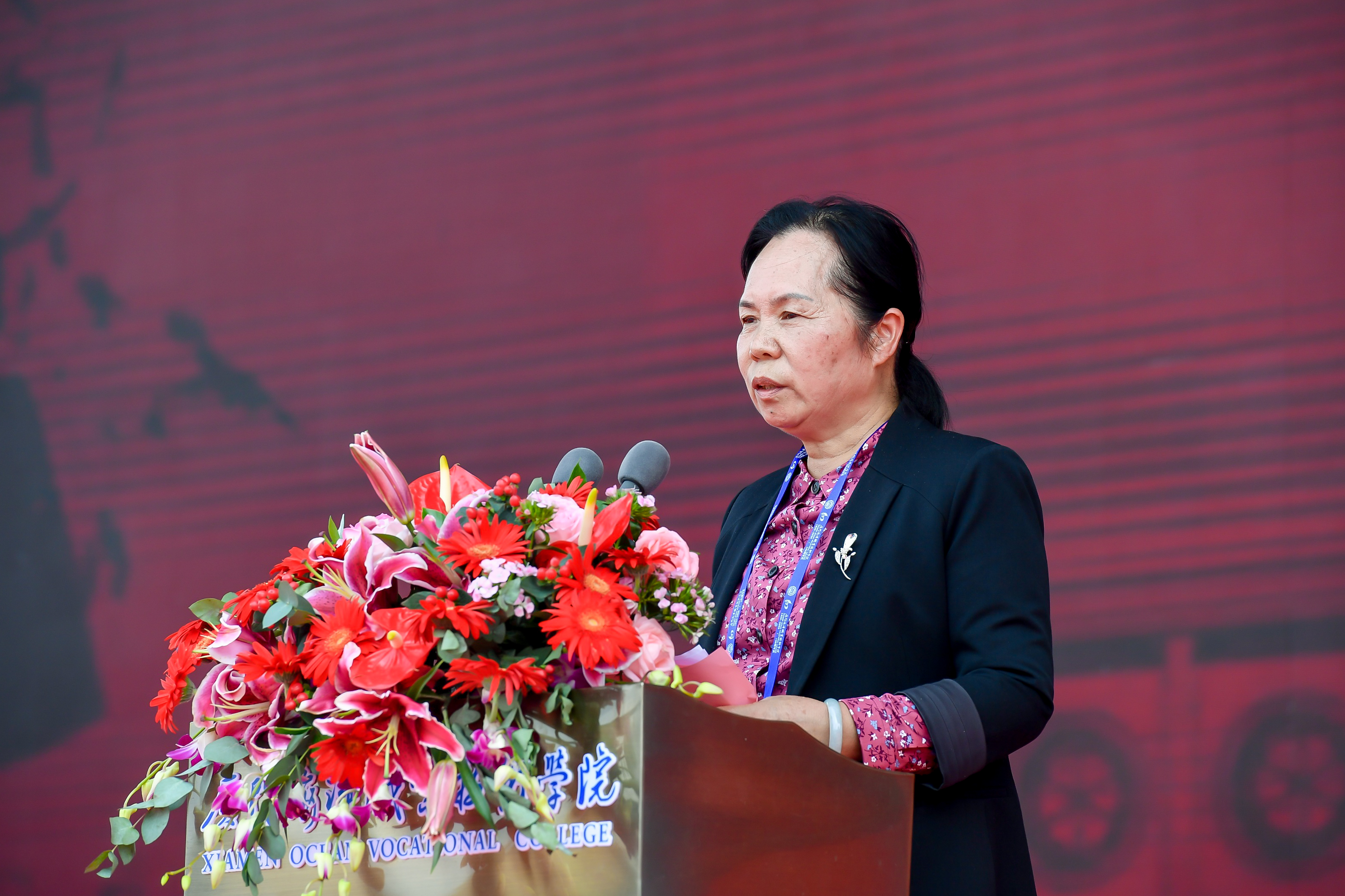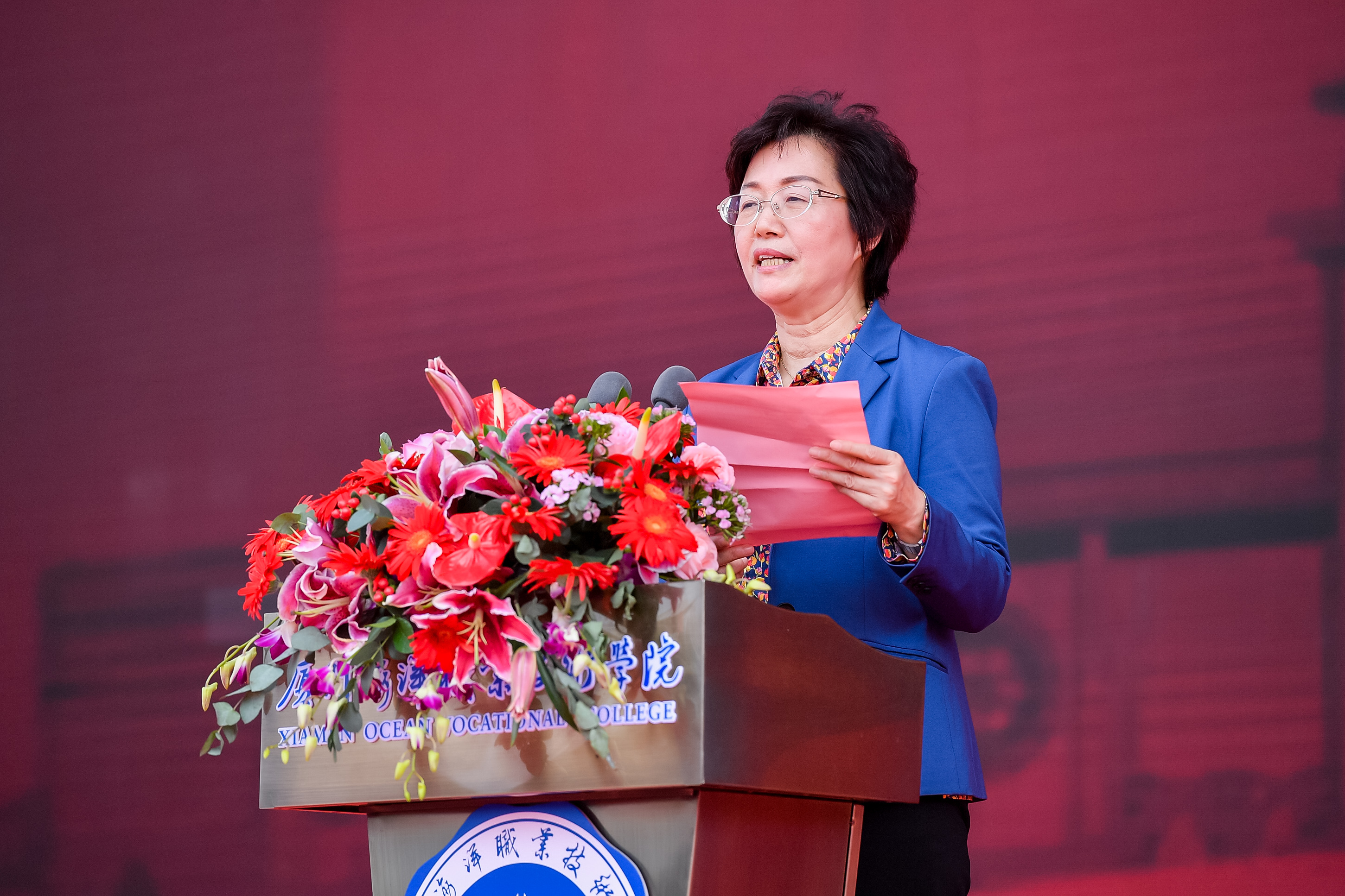 厦门市副市长国桂荣代表市委市政府向学校全体师生员工和海内外校友表示热烈祝贺。她表示,当前厦门市正处于加快推进国家海洋经济示范区建设的关键时期,海洋科技教育在海洋经济提速运行中具有重要的基础性、先导性和支撑性作用。她指出,厦门海洋职业技术学院要继续弘扬嘉庚精神,培养高精尖海洋创新创业人才,要强化专业共建、校企合作,加快优秀海洋科技成果转化应用,为建设海洋强国、海洋强省、海洋强市提供强有力的智力支持和人才保障。