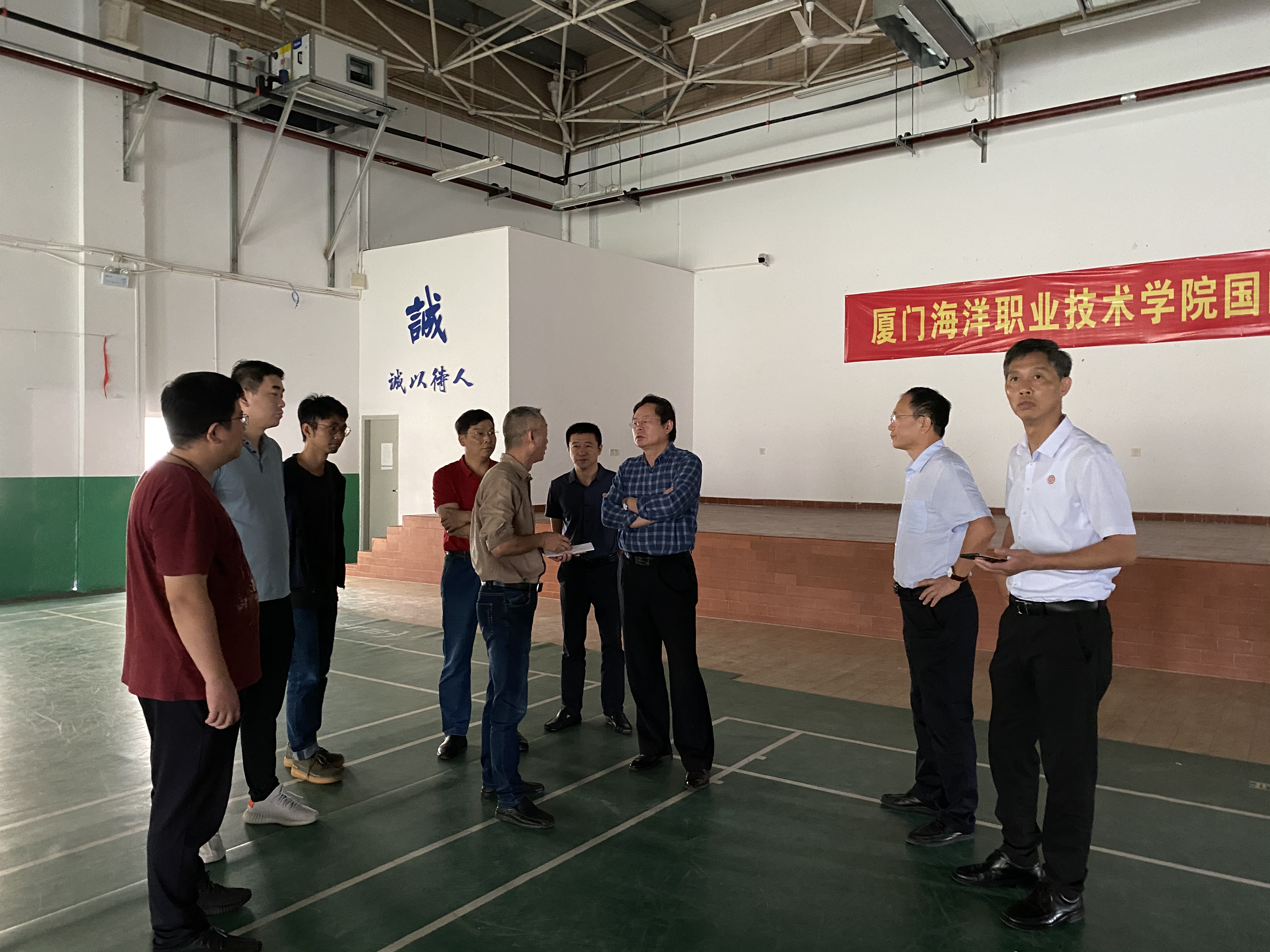 鲁性贵等在实地查看比赛场地时,对现场设备、场地布局及优化提升等提出了建议。我校党政办、后勤处、安全处、教务处、科研与产教融合处、海洋生物学院等部门及大赛合作企业厦门澳汤维尔生物科技有限公司参加了实地检查及交流会。