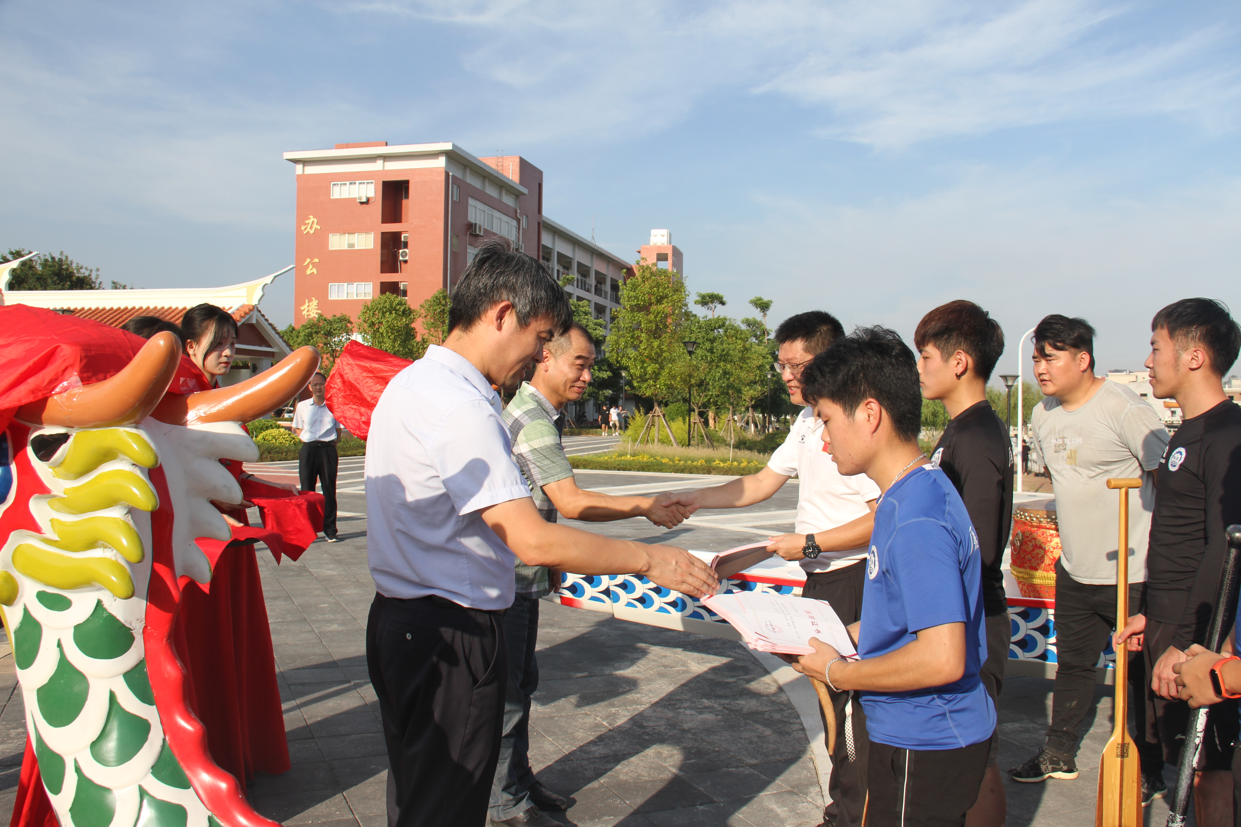 9月17日下午,龙舟捐赠及点睛下水仪式在学校翔安校区新时代广场隆重举行。校长陈昌萍、纪委书记缪雄平分别为龙舟点睛并向捐赠师生代表颁发证书,马国玄副校长为龙舟揭红,余云翼副校长出席仪式。