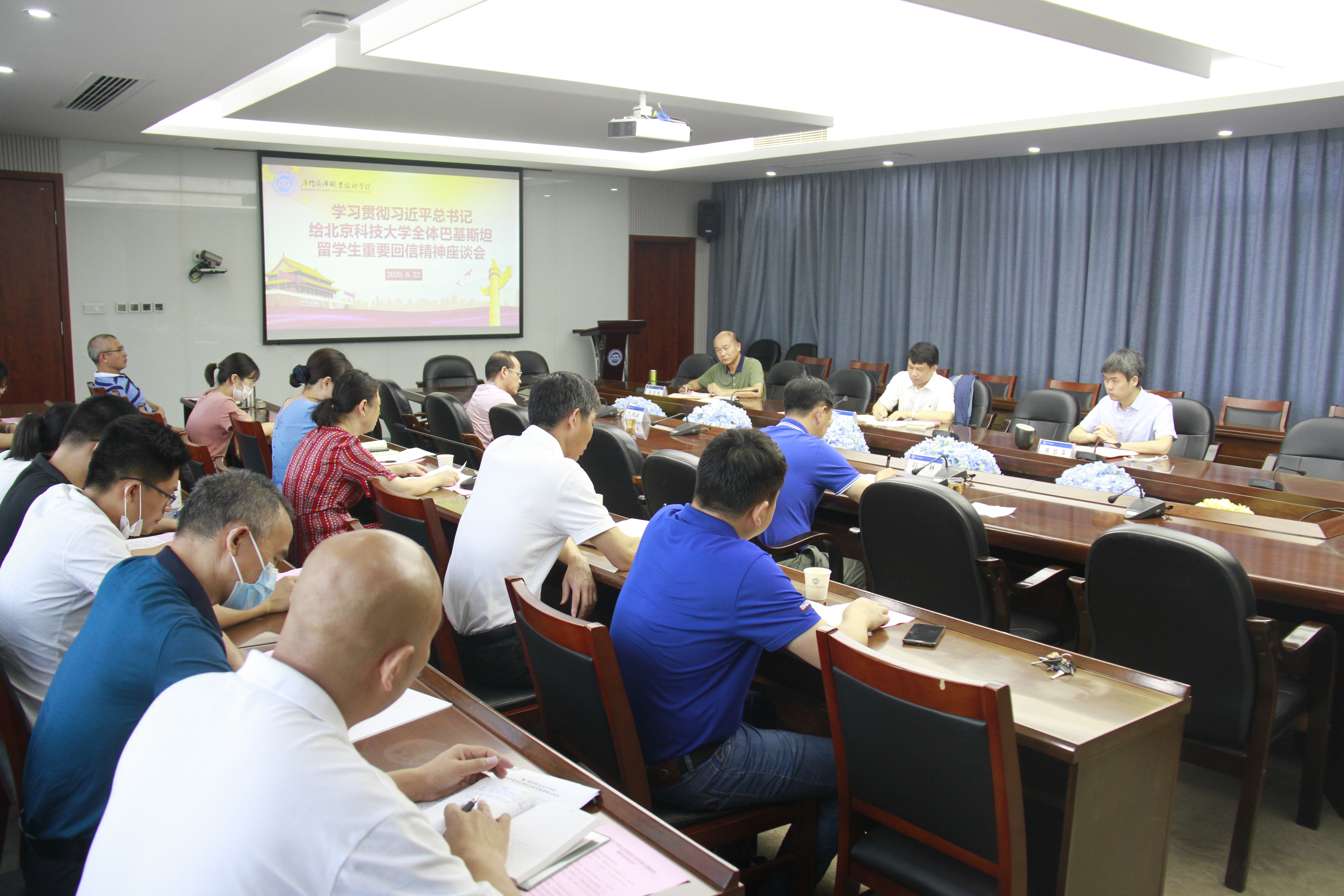 6月22日上午,我院召开座谈会,组织学习领会习近平主席给北京科技大学全体巴基斯坦留学生回信的重大意义和精神实质。党委书记陈一端主持会议,院领导陈昌萍、汤忠民、马国玄、孙学耕出席。