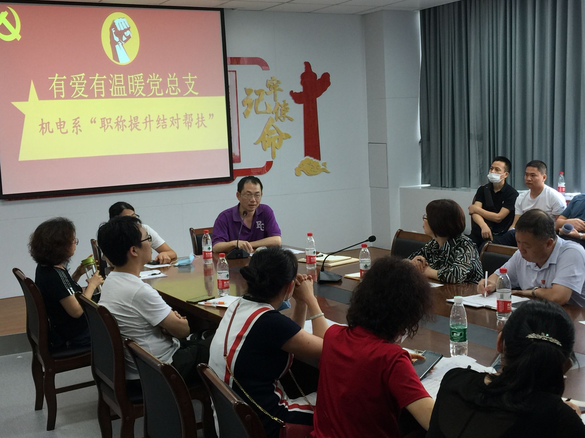 为加强教师队伍建设,充分发挥专业带头人、骨干教师的“传、帮、带”作用,日前,机电系党总支举办“职称提升结对帮扶—打造有爱有温度的党组织”主题活动。