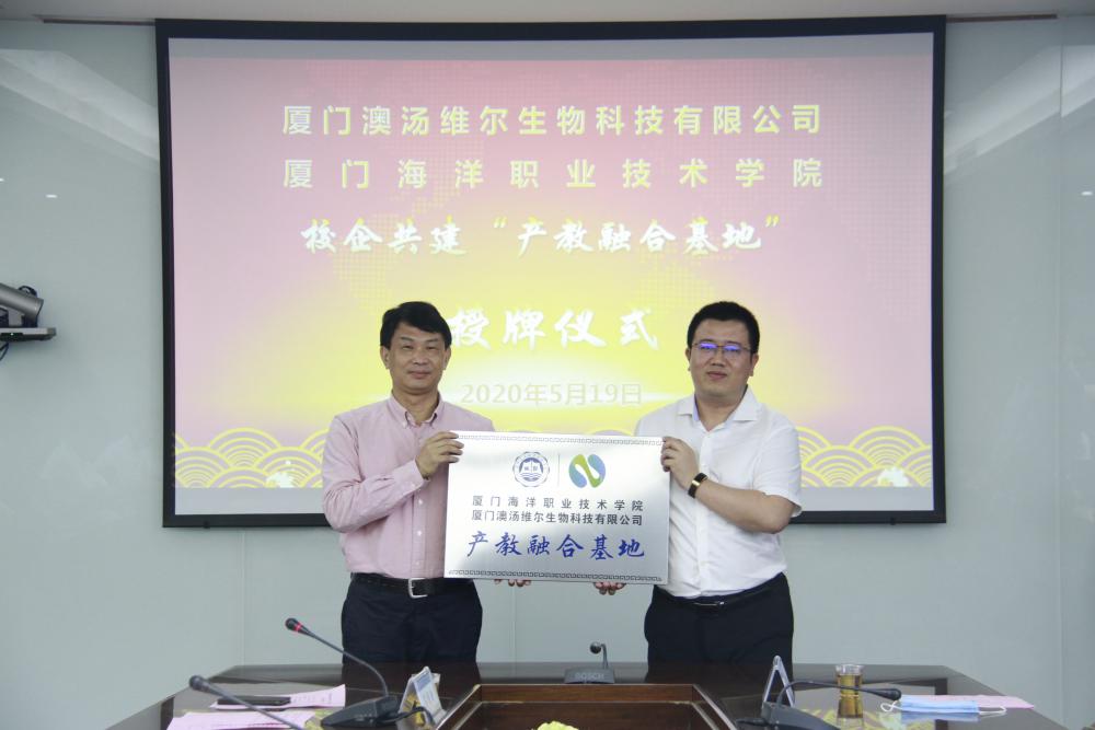 5月19日,我院与厦门澳汤维尔生物科技有限公司校企合作签约仪式在翔安校区隆重举办。院党委书记陈一端、院长陈昌萍、副院长孙学耕,厦门澳汤维尔生物科技有限公司总经理陈雄平、公司党支部书记江增水、副总经理魏志煌出席签约仪式。
