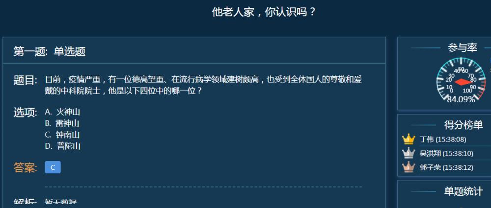 董亮老师为有效解决学生刷课、注意力不集中等问题,用课堂测验签到,把学生的参与度当作课堂考勤记录。他把人文历史、时事政治知识作为课堂测验内容,时常结合疫情找到专业知识与疫情防控的交叉点,在课堂上引出并加以引申,有效引导学生思考,且随堂测验,在潜移默化中对学生进行人文素养的培养与思政教育。