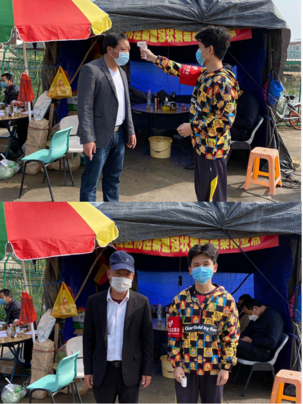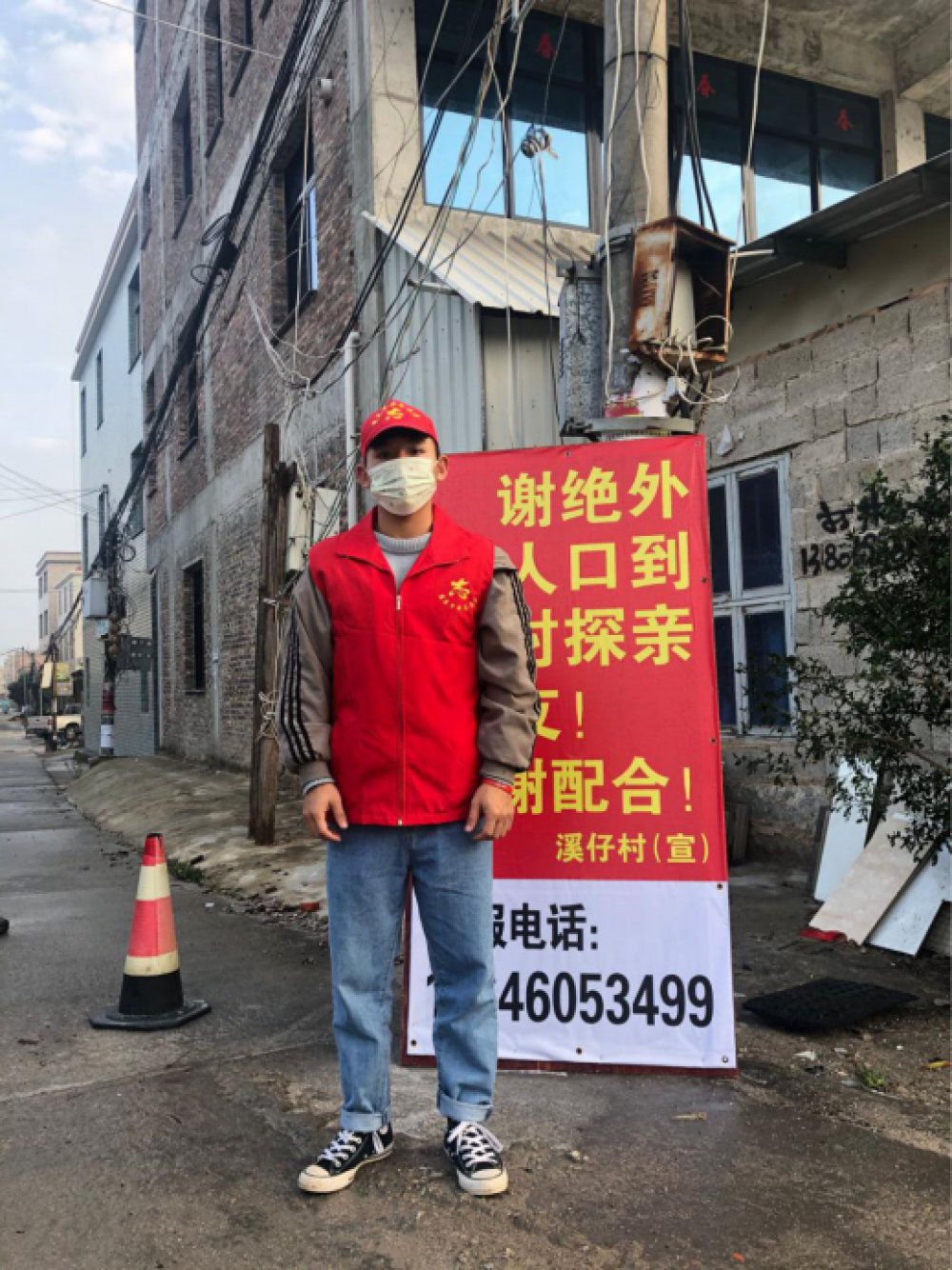 机电系制冷3182班学生刘志强主动参与漳浦县杜浔镇城里村的联防联控,在村庄要道站岗值班,严格把关,对外来车辆进行劝返及信息登记,对来往人员进行体温测量,普及疫情信息及防控知识。
