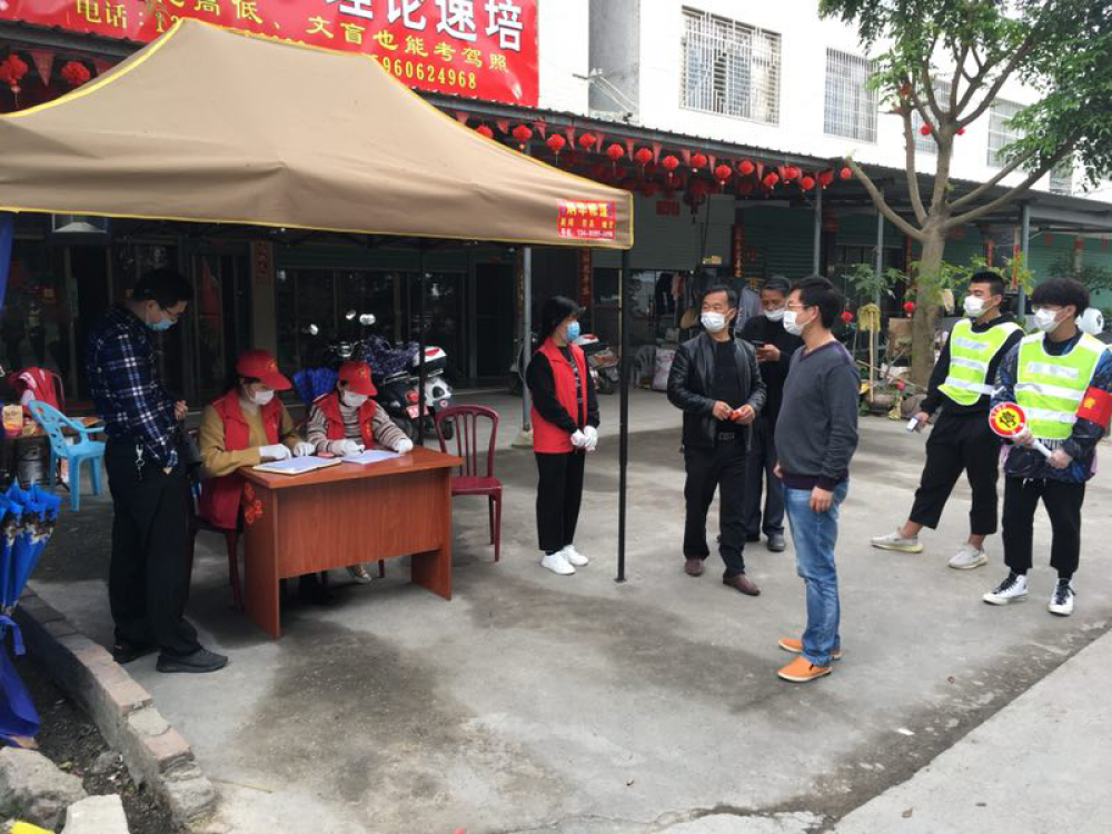 模具3172张旭福连续十多天以来对进出村子的人员进行体温车辆与来往登记,宣传防疫知识。