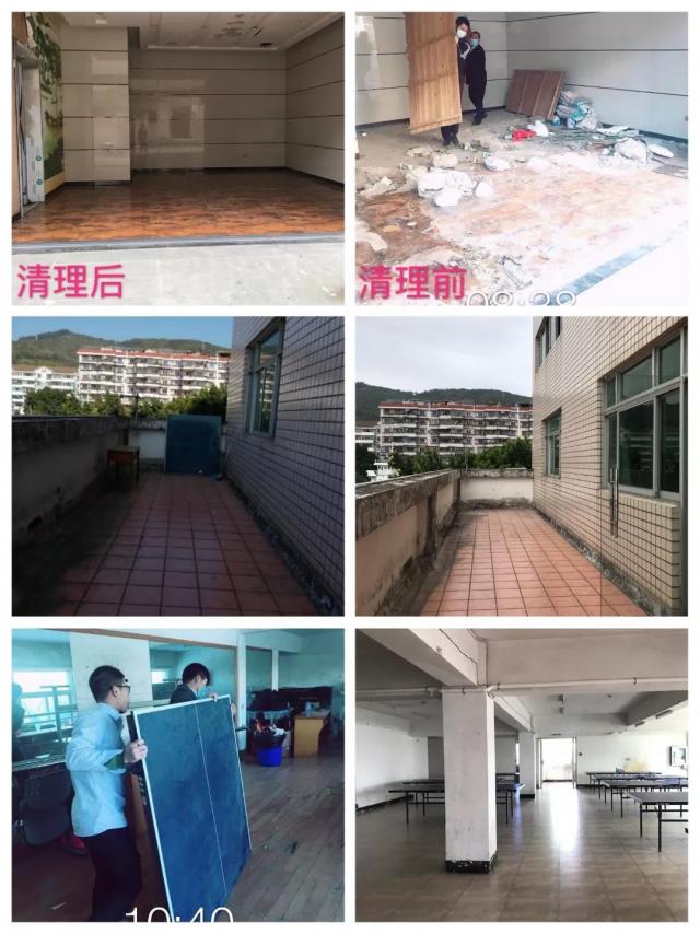 他督促物业每天进行消毒工作,完成了两校区医学观察区的设置,并配齐生活用品,达到拎包入住的条件。他克服春节期间人力、运力紧张的困难,3天时间清理校内综合楼、7号楼、9号楼副楼的卫生死角,并将垃圾清运出校,营造干净整洁的校园。