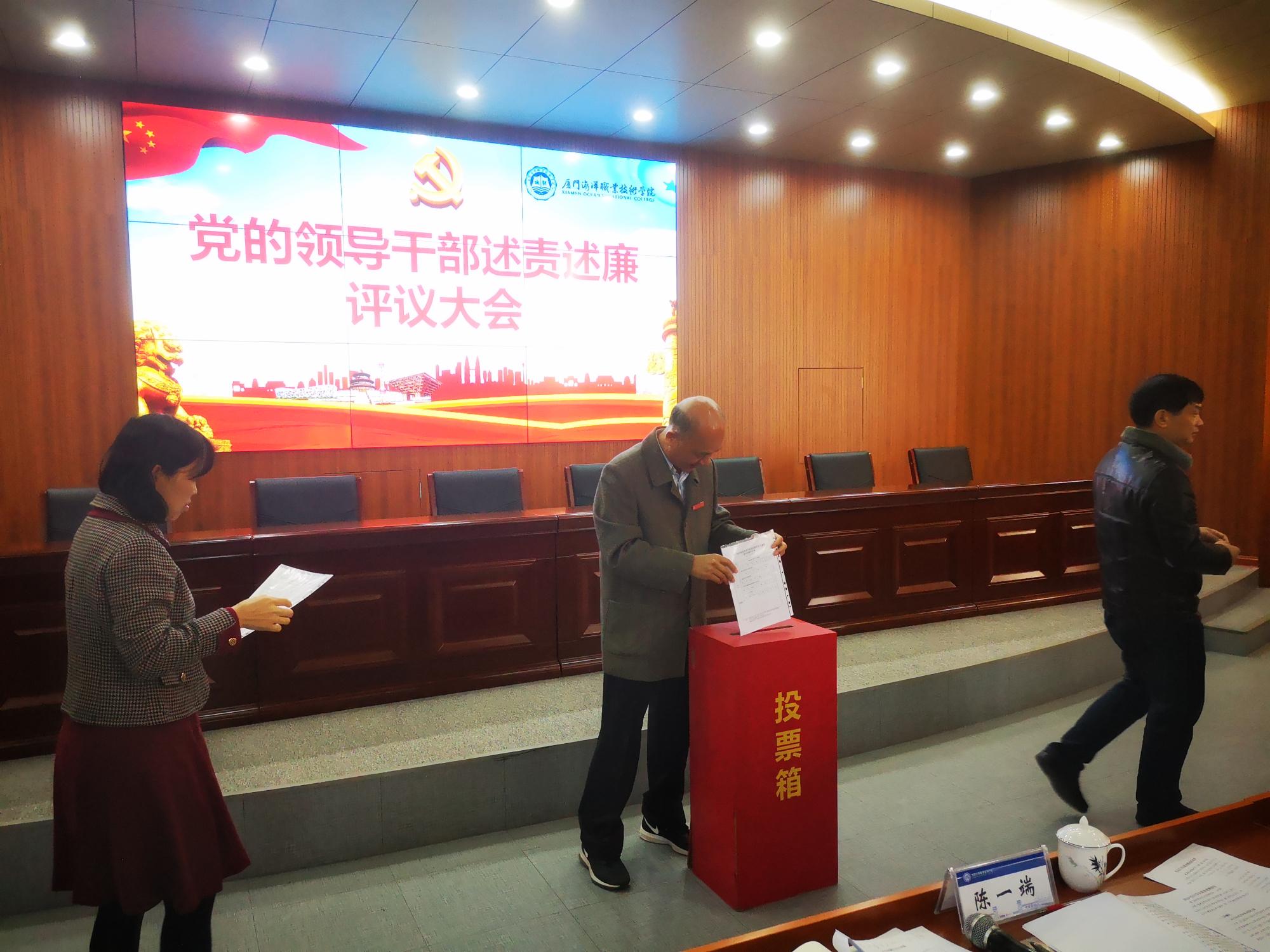 1月13日上午,学院在翔安校区学术报告厅召开党的领导干部述责述廉评议大会。学院党政班子成员、中层干部及各党总支纪检委员参加会议。会议由院党委书记陈一端主持。