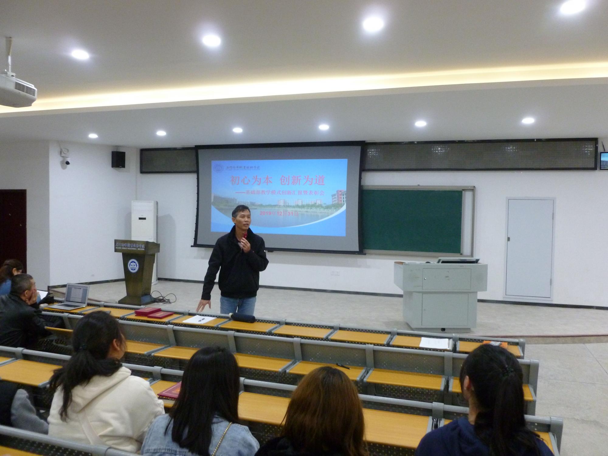 2019年12月31日下午,基础部举办“初心为本,创新有道”教学模式创新汇报表彰会。学院教务处处长缪明聪、督导团团长祝敏、基础部全体教师及2019级部分学生代表参加会议。会议由基础部副主任柯春梅老师主持。
