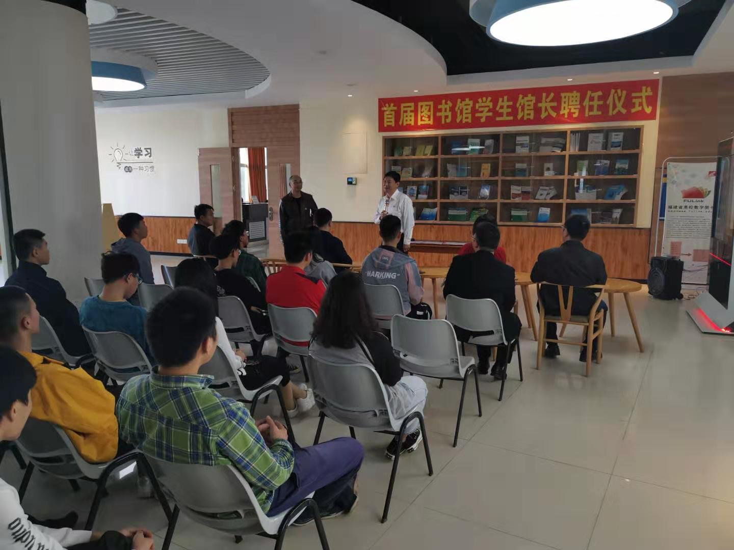 为贯彻落实党的十九届四中全会精神,积极构建更加有效的学校治理体系,打通学生参与学校民主管理的新途径。2020年1月6日下午,首任学生图书馆馆长受聘仪式在图书馆举办。学院党委委员、副院长孙学耕为魏荣埕同学的竞聘团队颁发聘任证书。