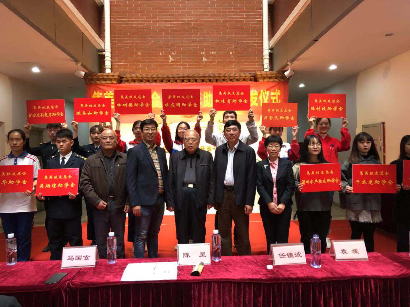 多年来,集美校友总会在助学、奖学方面做了大量的工作:2003年初,集美校友总会在征得了陈村牧先生家属的同意后,设立陈村牧助学金;2004年设立嘉泽助学金,取意为牢记嘉庚校主恩泽的意思;2014年设立“21成美基金”,奖励有突出成绩和卓越技能的学生;2019年设立于本龙助学金。