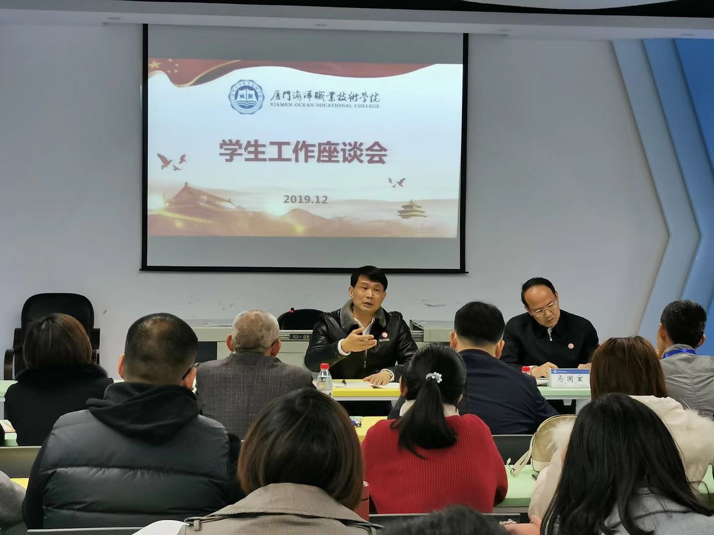 12月27日上午,学院在精益创客室召开学生工作座谈会,院党委书记陈一端到会并作重要讲话,座谈会由党委委员、副院长马国玄主持。