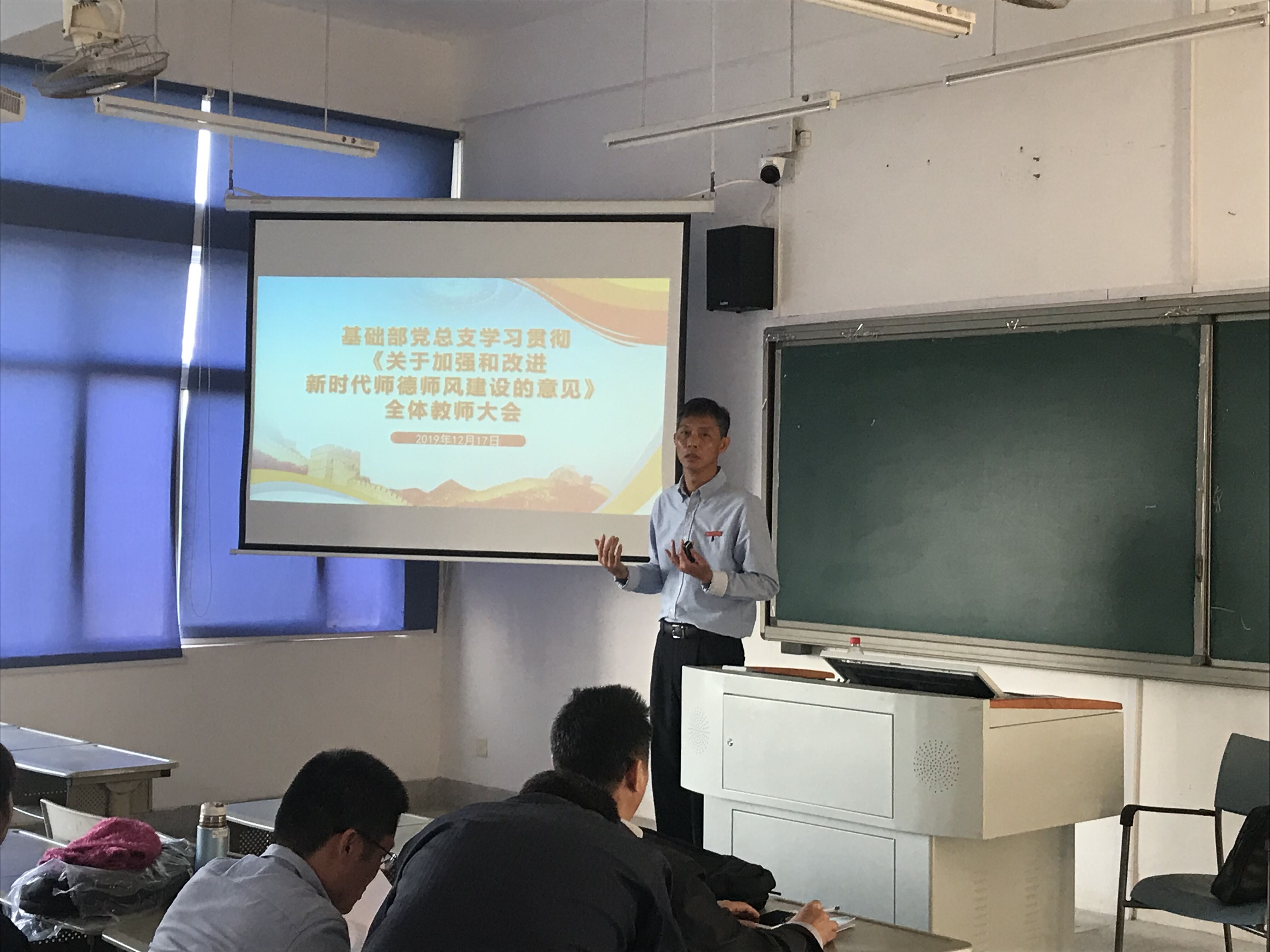 12月17日,基础部党总支召开全体教师大会,专题学习教育部最新颁布的《关于加强和改进新时代师德师风建设的意见》,并进行质量管理体系宣贯。会议由党总支书记、基础部主任叶小超主持,基础部、思政部全体教师参加了大会。
