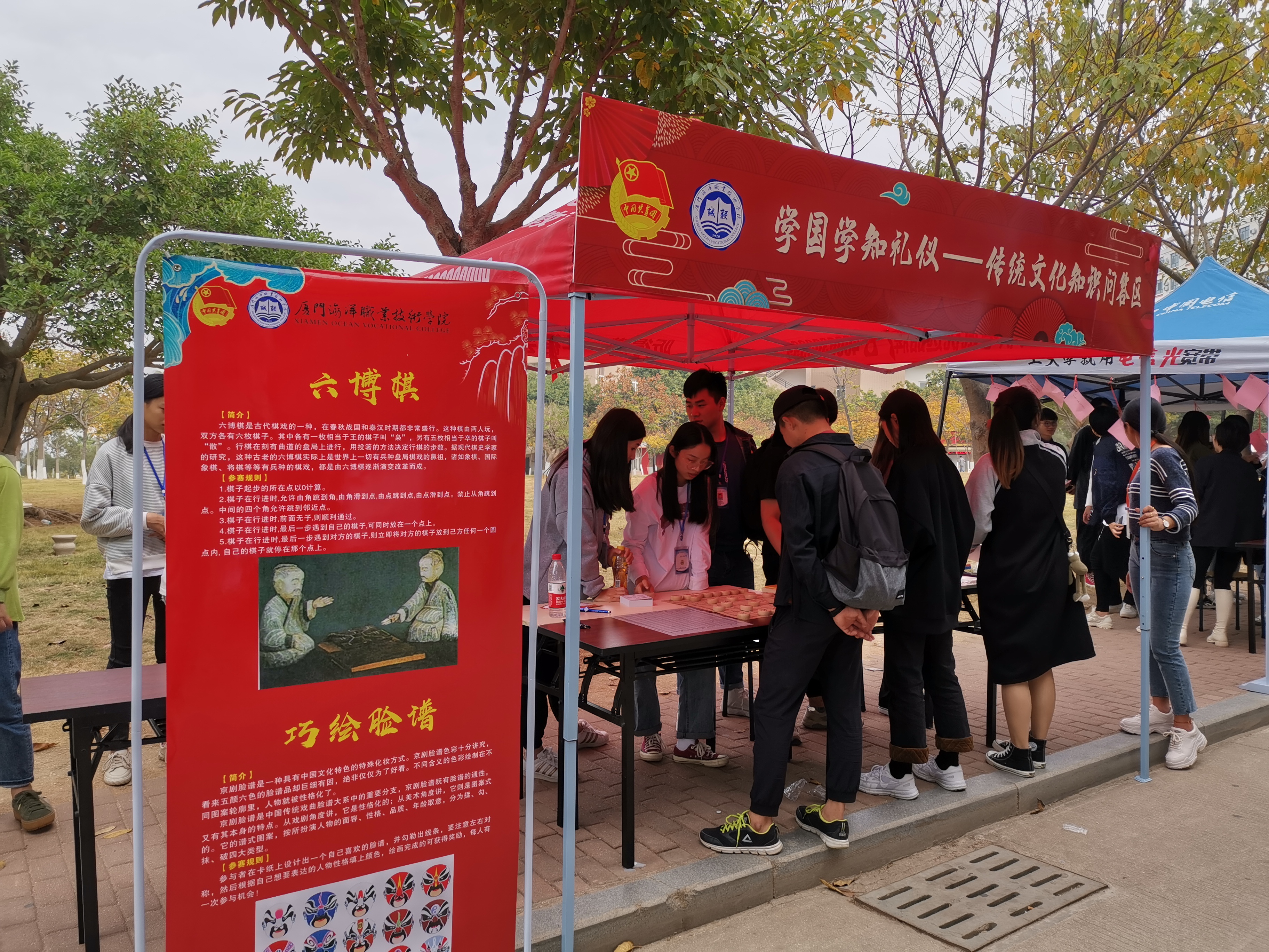 12月17日,学院在翔安校区举办“礼敬中华寻根筑梦”首届中华传统文化节暨第十三届社团文化节。我院党委副书记汤忠民,党委委员、副院长孙学耕,厦门市翔安职业技术学校校长杨经葵出席活动,厦门技师学院团委老师到场指导。