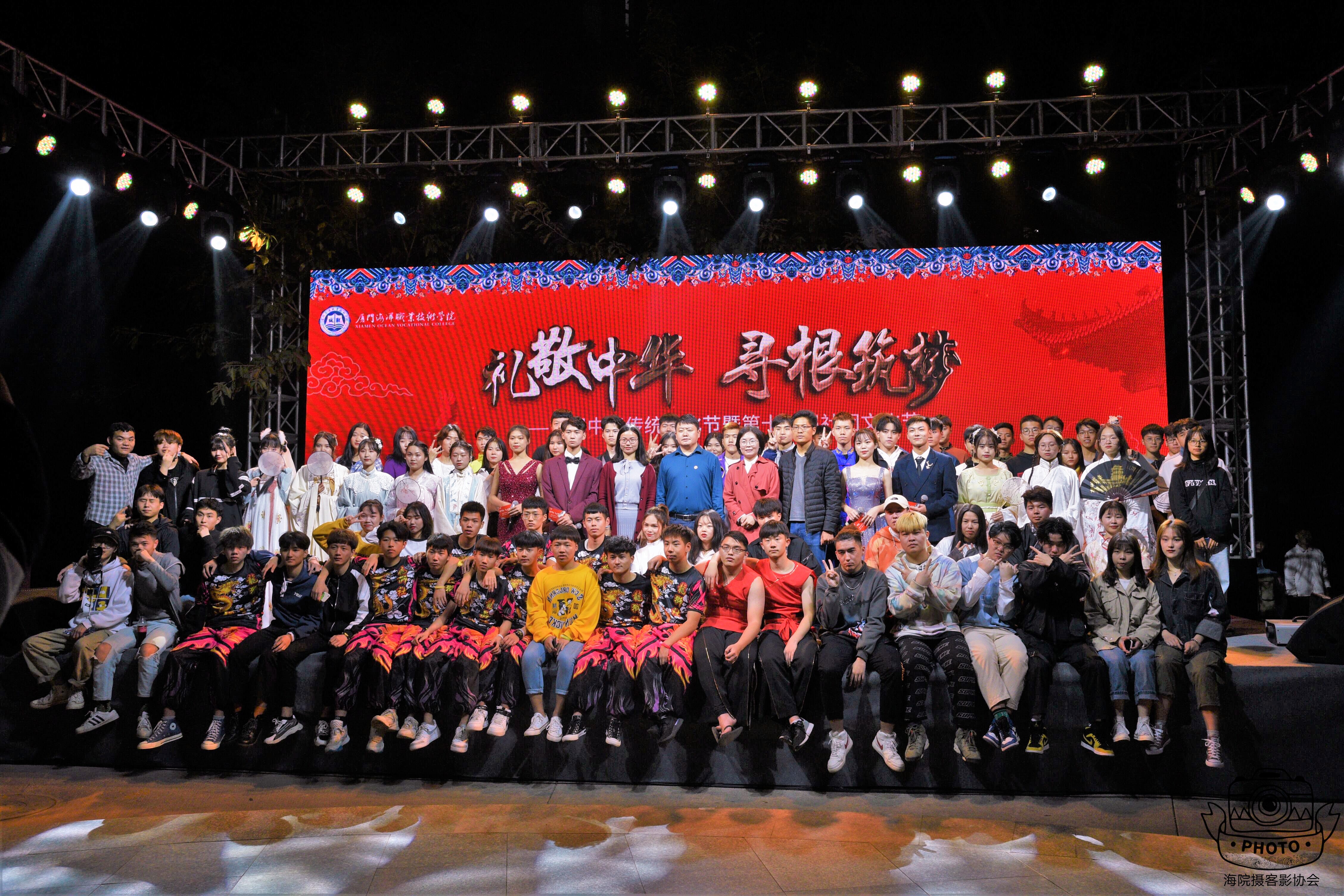 活动主会场设在学生公寓社区圆盘,文艺节目汇演分为中华传统文化节目汇演和“社团之夜”两个部分。舞龙舞狮表演、乐器独奏、古风舞蹈、茶艺展示、汉服走秀、礼仪展演、武术表演、歌曲独唱、说唱演绎、街舞等独具特色的文艺演出,迎来现场不时掌声雷动。留学生也参与演出,为师生带来朗朗上口的《三字经》。本次活动还得到周边高校的大力支持,多所学校学生前来助演,来自厦门市翔安职业技术学校的舞狮表演和厦门技师学院的舞龙、鼓艺表演赢得现场观众阵阵喝彩。