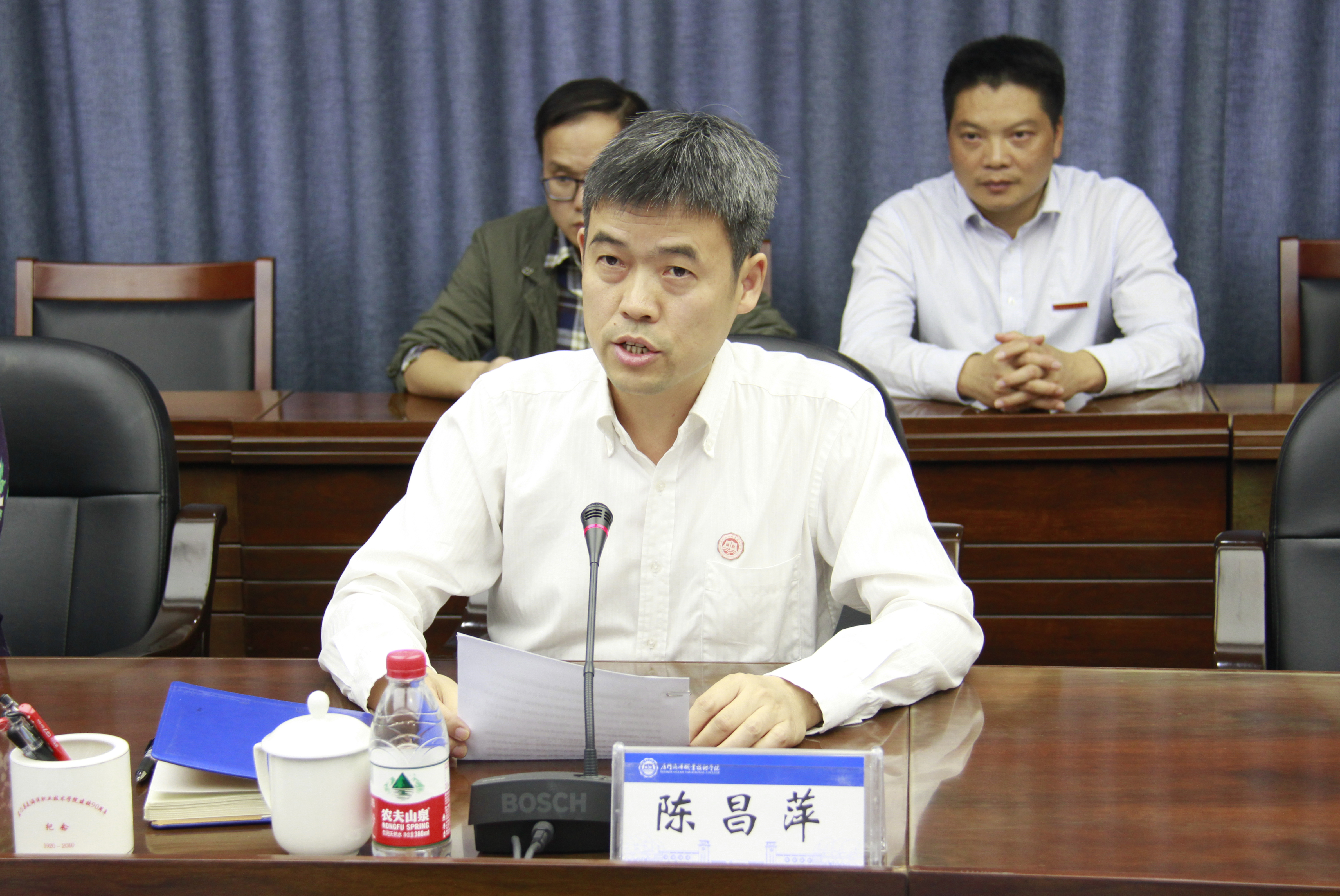 学院院长陈昌萍代表班子成员作表态发言,他回顾了陈苏丽担任党委书记期间为学院新一轮创新创业发展所作出的重要贡献,并表示陈一端的到任必定会给学院带来新的、更加先进的思想和理念,将为学院的高水平特色发展注入新的元素和动力。