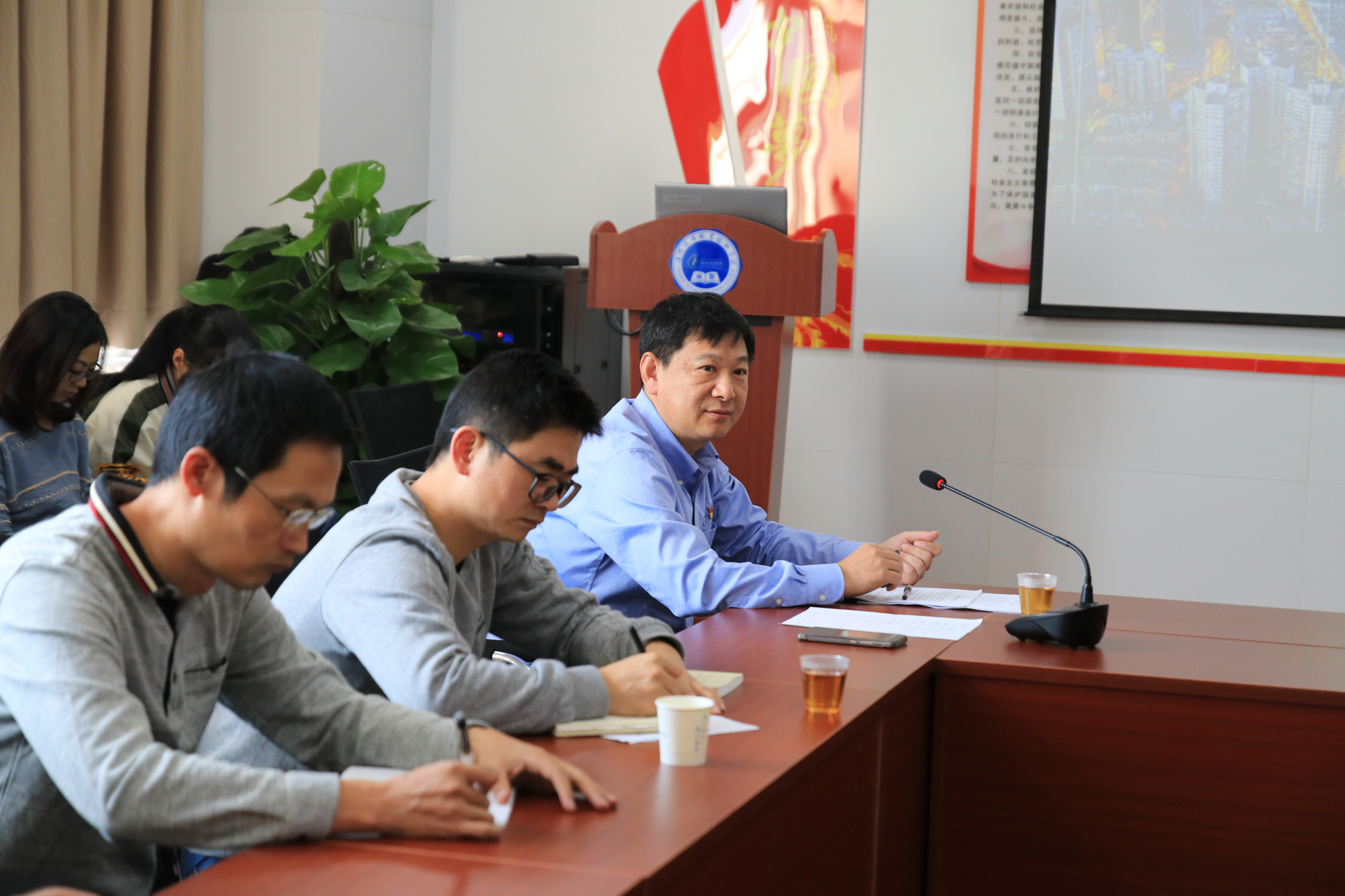 教务处、科研处、发展规划与质量管理中心、督导团、成教部、图书馆、信息中心和信息技术系全体党员到场聆听报告。