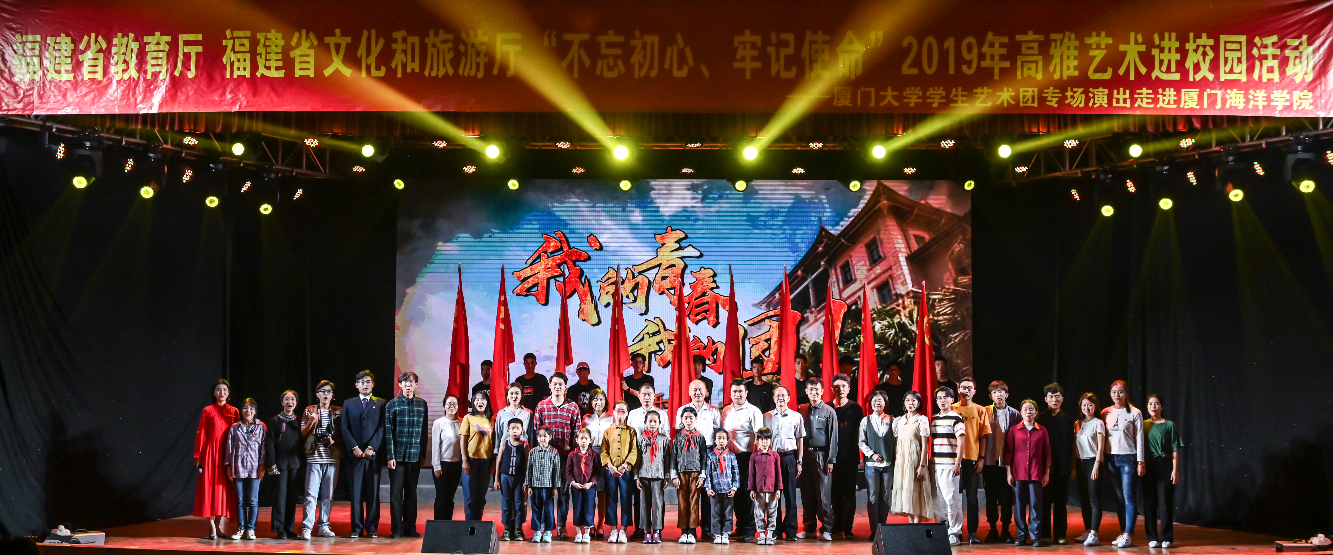 11月12日晚,由福建省教育厅福建省文化和旅游厅主办、厦门大学学生艺术团主演的校园原创音乐话剧《我的青春我的团》走进厦门海洋职业技术学院专场演出在我院思明校区礼堂精彩上演。学院党政班子成员汤忠民、缪雄平、余云翼、马国玄、吴云辉以及有关部门负责人、各系师生到场观看。