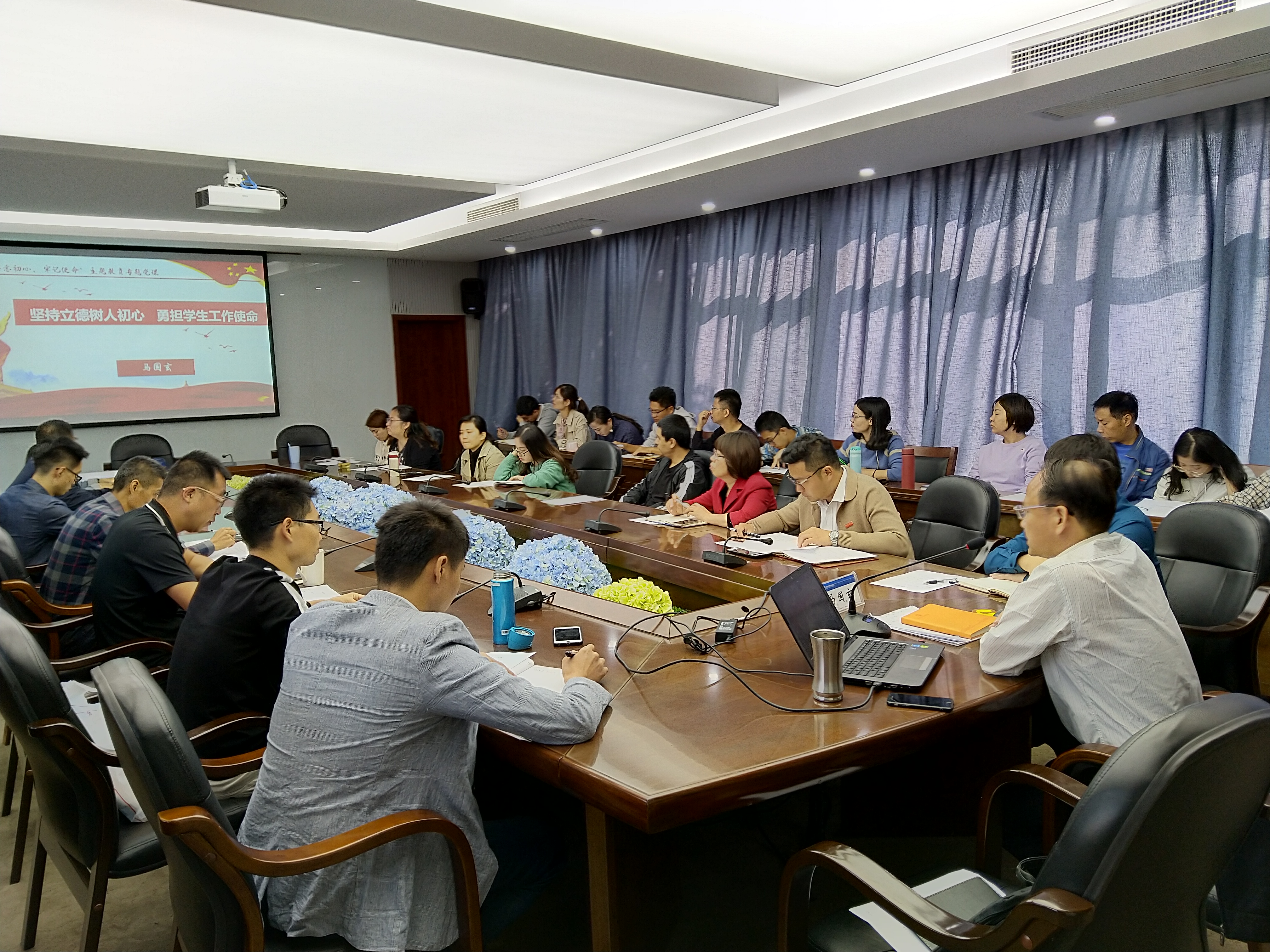 11月19日,党委委员、副院长马国玄同志为学生处、系团总支书记、全体辅导员讲授题为“坚持立德树人初心、勇担学生工作使命”的主题党课。