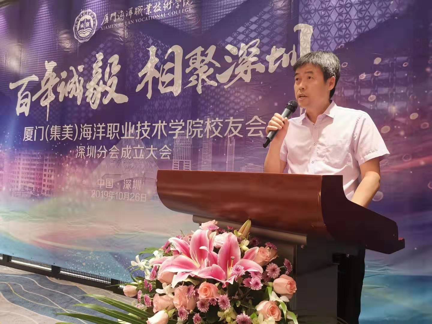 陈昌萍对深圳校友取得的成就给予高度赞赏,对深圳分会的成立表示祝贺。他向校友们介绍了学院近年发展情况,在学院大力推进高水平特色发展中,期许得到包括校友在内的社会各界的大力支持。在母校“百年华诞”来临之际,欢迎校友们能够回母校共襄盛举,出谋划策,捐资助学、在人才培养、校企合作、技术研发、文化传承等方面与母校开展深层次合作,共绘美好蓝图。