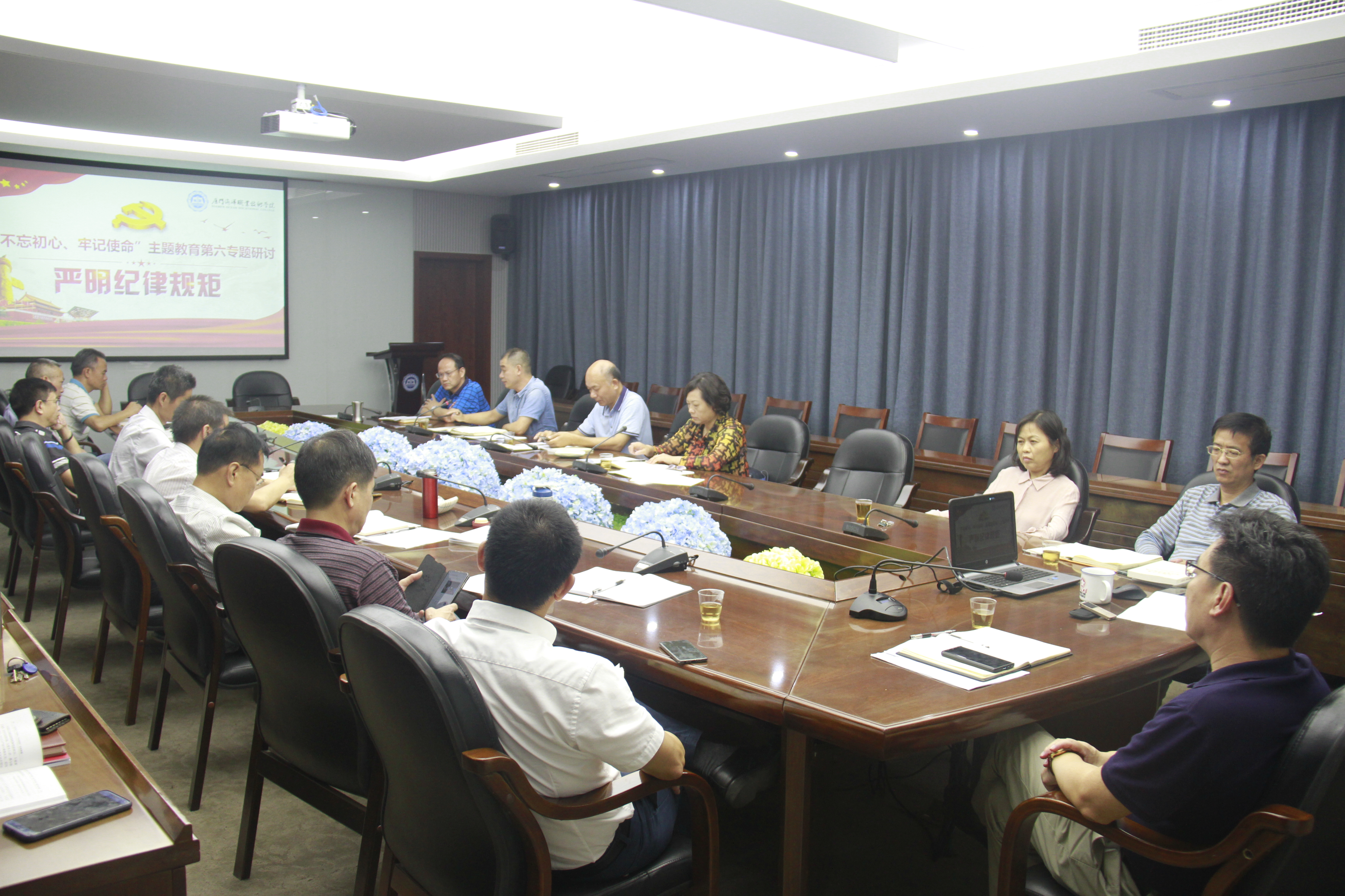 10月28日上午,我院在翔安校区办公楼201会议室召开“不忘初心,牢记使命”第六专题“严明纪律规矩”集中研讨会。学院党委书记陈苏丽主持会议并发表讲话,党政班子成员汤忠民、缪雄平、余云翼、马国玄、吴云辉出席会议。