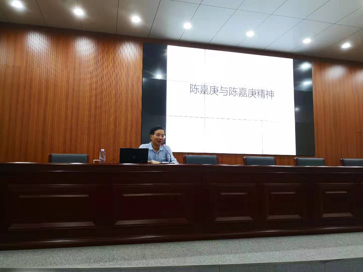 曾教授讲述了自己在集美大学的组建和工作经历,分享了自己学习、研究陈嘉庚精神的成果和感悟。曾教授从陈嘉庚先生出生的时代背景开始谈起,紧接着分析了陈嘉庚先生生平经历的重要时期,让我们感受到了嘉庚先生浓烈的爱国情怀。