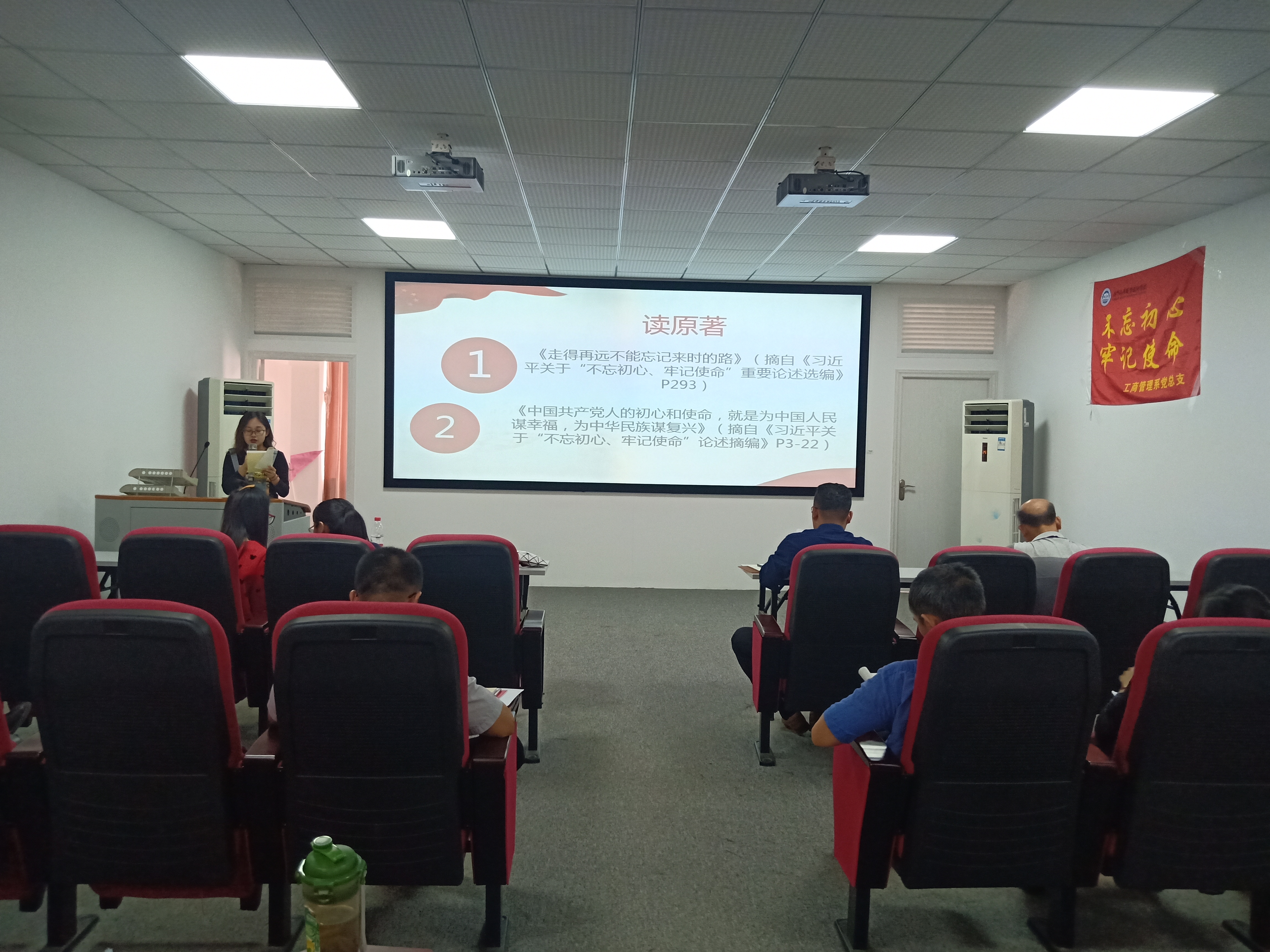 会上,党员老师曾慧君、程欣然阅读摘自《习近平关于“不忘初心、牢记使命”论述摘编》的文章《走得再远不能忘记来时的路》、《中国共产党人的初心和使命,就是为中国人民谋幸福,为中华民族谋复兴》。