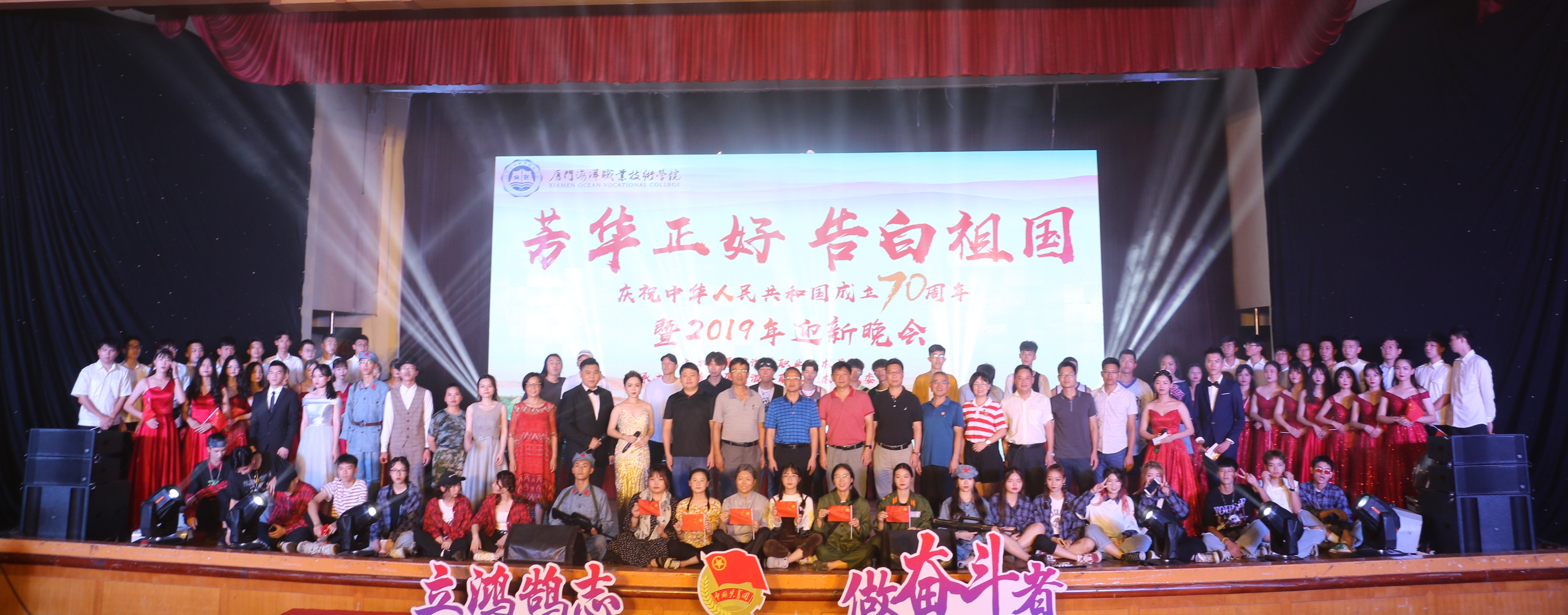 9月28日晚,我院“芳华正好告白祖国”庆祝新中国成立70周年暨2019年迎新晚会在思明校区大礼堂隆重举行,副院长马国玄、副院长孙学耕、后勤处、督导团、教务处、学生处、各系主要负责人、专任教师、辅导员、教官等与千余名新生一同观看了本场晚会。