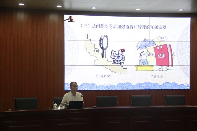 缪雄平列举了党章党规中对党员纪律的要求,分析了违规破纪的案例,强调对党忠诚度关乎遵规守纪、个人诚信和党内监督,党员要严守纪律规矩,必须时刻绷紧纪律规矩这根弦,始终做遵纪守法的引领者、示范者;要把纪律规矩作为衡量规范自己言行的标尺,切实做到政治纪律摆在首位、组织纪律牢记在心、廉洁纪律红线不碰、群众纪律执行到位、工作纪律严守本分、生活纪律作好示范;要始终坚守理想信念,自觉践行共产党人的初心使命,做到遵规守纪又敢于担当;要持续深入地抓好纪律建设、作风建设,以实际行动诠释忠诚干净担当。