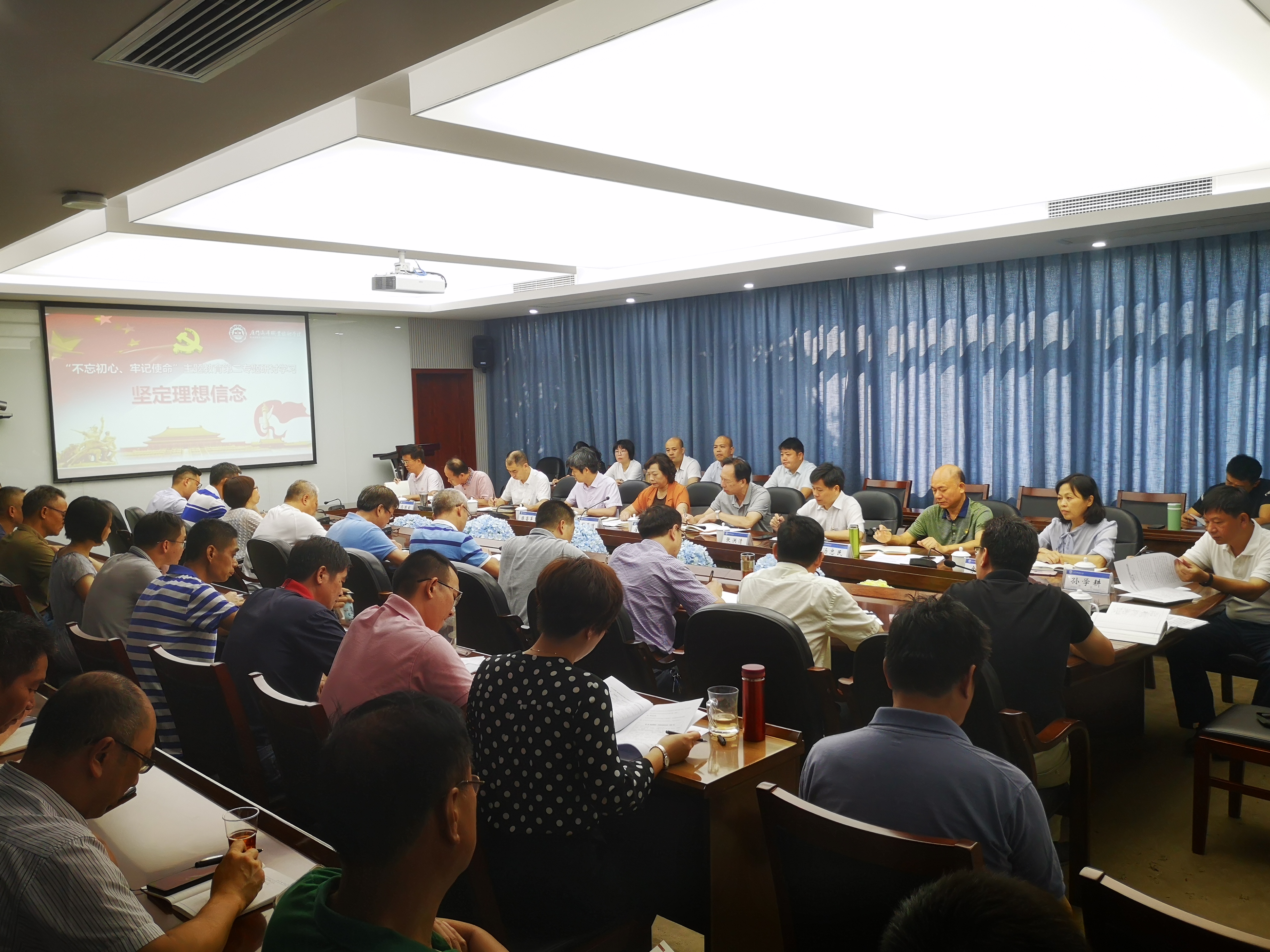 10月8日上午,我院开展“不忘初心、牢记使命”主题教育第二专题“坚定理想信念”集中研讨。省教工委第三巡回指导组组长詹林莅会指导。学院党政班子全体成员,中层干部参加学习。会议由党委书记陈苏丽主持。