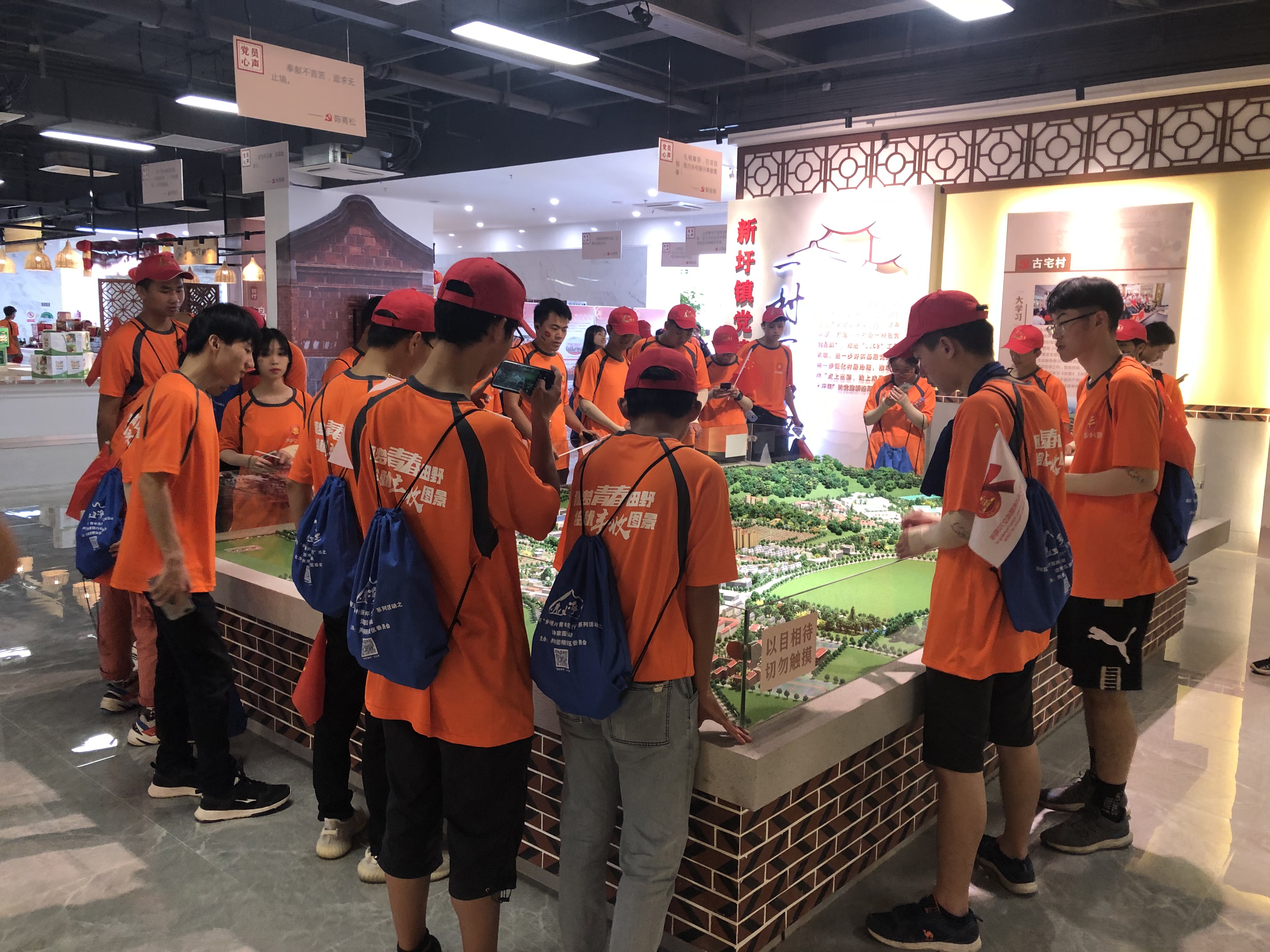 村跑”结束后,同学们来到了新圩镇党群活动服务中心暨食尚小镇客厅“初心馆”。同学们探访社会主义新农村建设新貌,感受中国速度与和谐发展成绩,感悟党的初心和使命,聆听初心故事,厚植爱国情怀,强化爱国情、强国志、报国行,进一步增强学习贯彻习近平新时代中国特色社会主义思想的坚定性和自觉性。