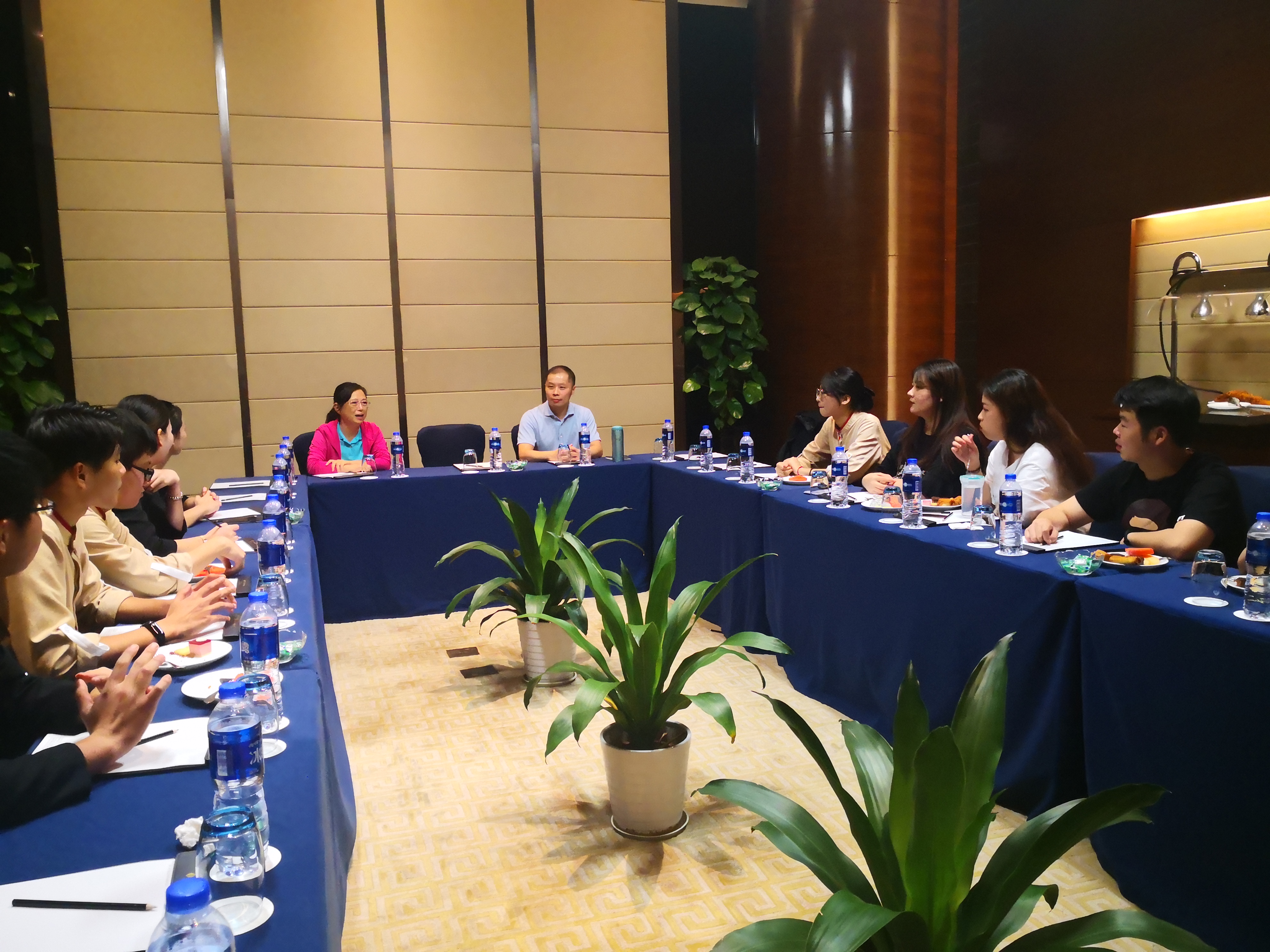 座谈会上,徐薇主任细心询问实习学生工作、生活、学习、思想状态等方面的情况,学生结合自身工作岗位如实汇报自己的实习成果、实习感悟和体会,畅谈实习收获和困惑。为消除同学们对邮轮工作的迷茫,江苏中江集团星洲分公司的阮亚威先生现场为同学们答疑解惑,表示将进一步加强与学校和实习学生的交流和沟通,创造更好的实习环境,鼓励大家认真学习,提高英语口语能力,顺利通过邮轮的面试。两位老师也勉励同学们要珍惜实习机会,从容面对工作岗位遇到的新生事物,共同克服困难,早日通过邮轮面试。座谈会后,两位老师还深入同学们的实习工作场所,考察了解同学们的工作环境。