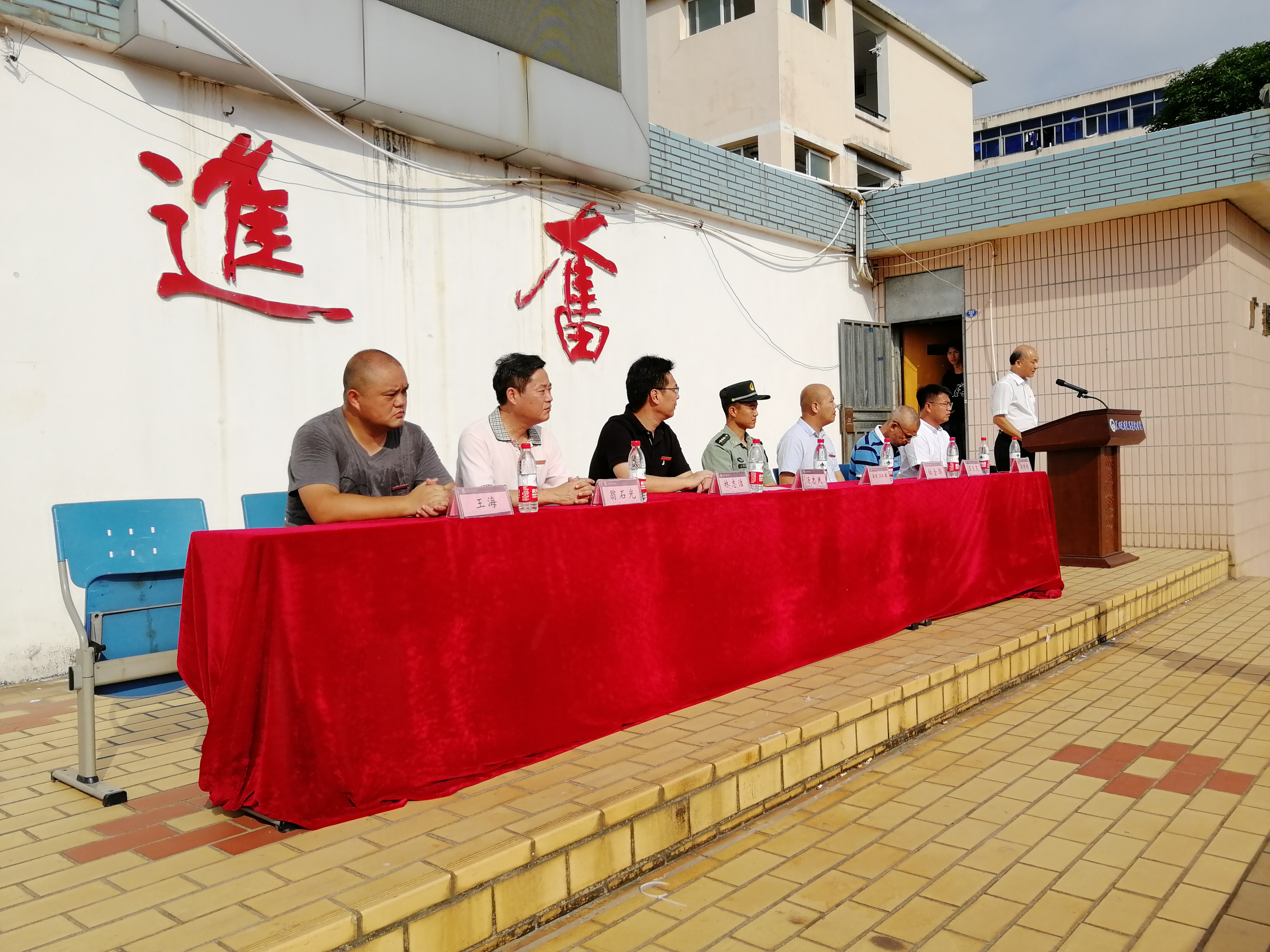 教官代表表示要以良好的军人形象、过硬的军事素质完成本次的军训任务;遵守军训的要求和学校的规章制度,并按照军训计划科学施训。同时,要求同学们在军训过程中,严格要求自己,服从命令,听从指挥,并通过军训了解国防,为国防建设奉献自己的力量。