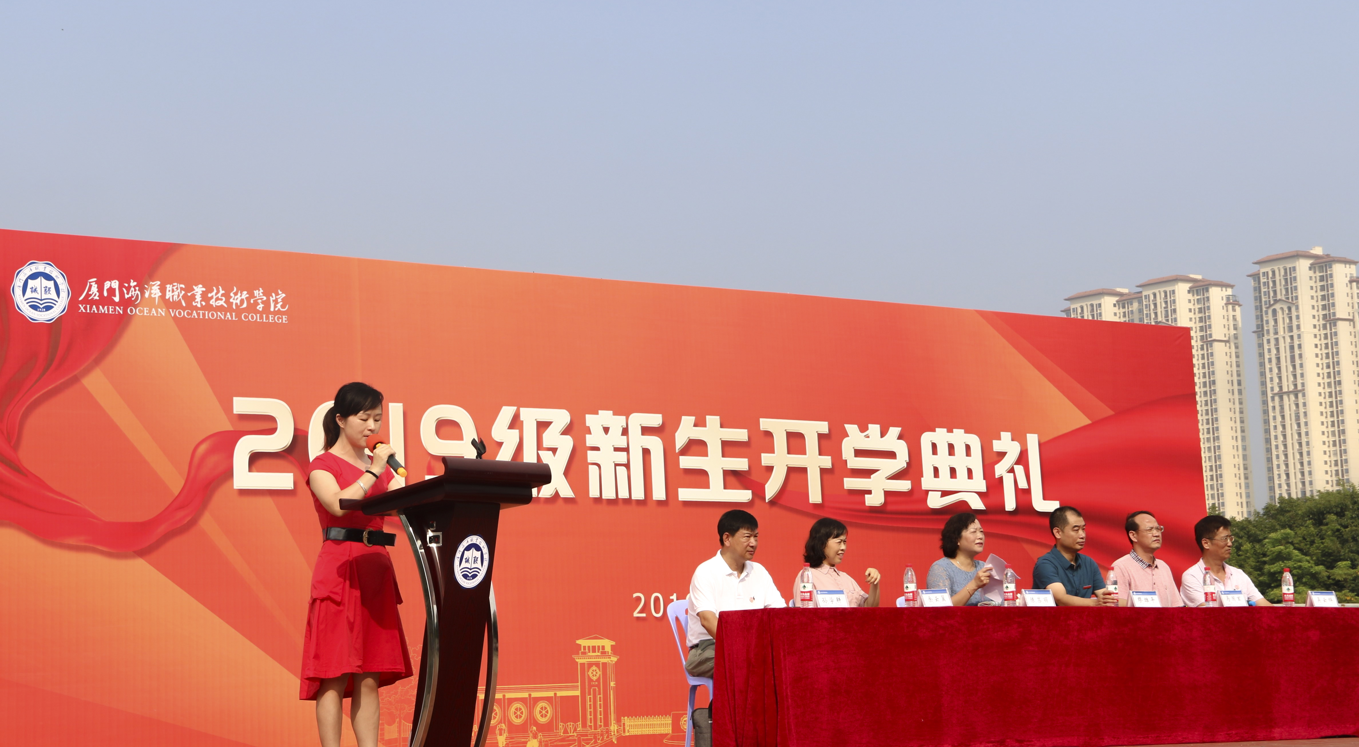 院党委书记陈苏丽对2019级新生表示欢迎,并对他们提出三点期望,一要坚定理想信念,永葆家国情怀;二要秉承诚毅校训,做好嘉庚弟子;三要心怀海洋梦想,淬炼海洋品质。陈苏丽勉励新生们要弘扬嘉庚精神,秉承“诚毅”校训,勇乘时代之浪,绽放青春之花,以优异成绩向新中国成立70周年和学院百年华诞献礼,为实现成才梦、海院梦和海洋强国梦而努力奋斗。