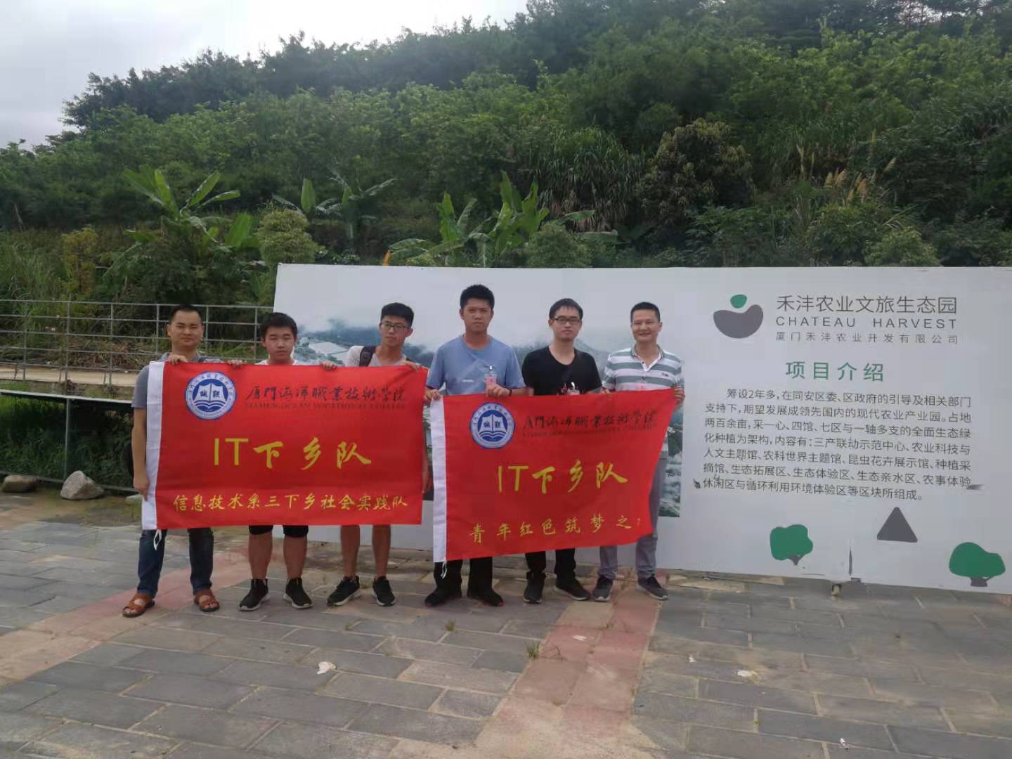 7月7日,信息技术系暑期三下乡“IT下乡”实践队在黄朝阳、陈金木老师的带领下,来到同安区汀溪镇五峰村厦门禾沣农业开发有限公司调研现代农业,开展暑期三下乡社会实践活动。