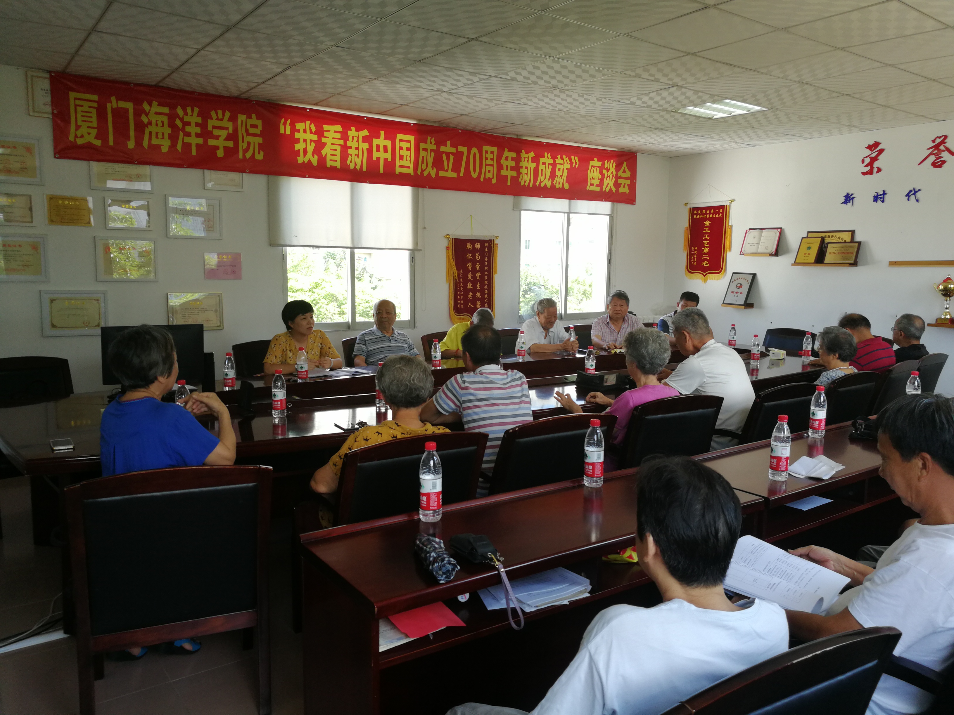 7月30日下午,学院思明校区办公楼四楼会议室召开“我看新中国成立70周年新成就”座谈会。23位退休老同志代表参加座谈,会议由退教协会会长黄秀英主持。