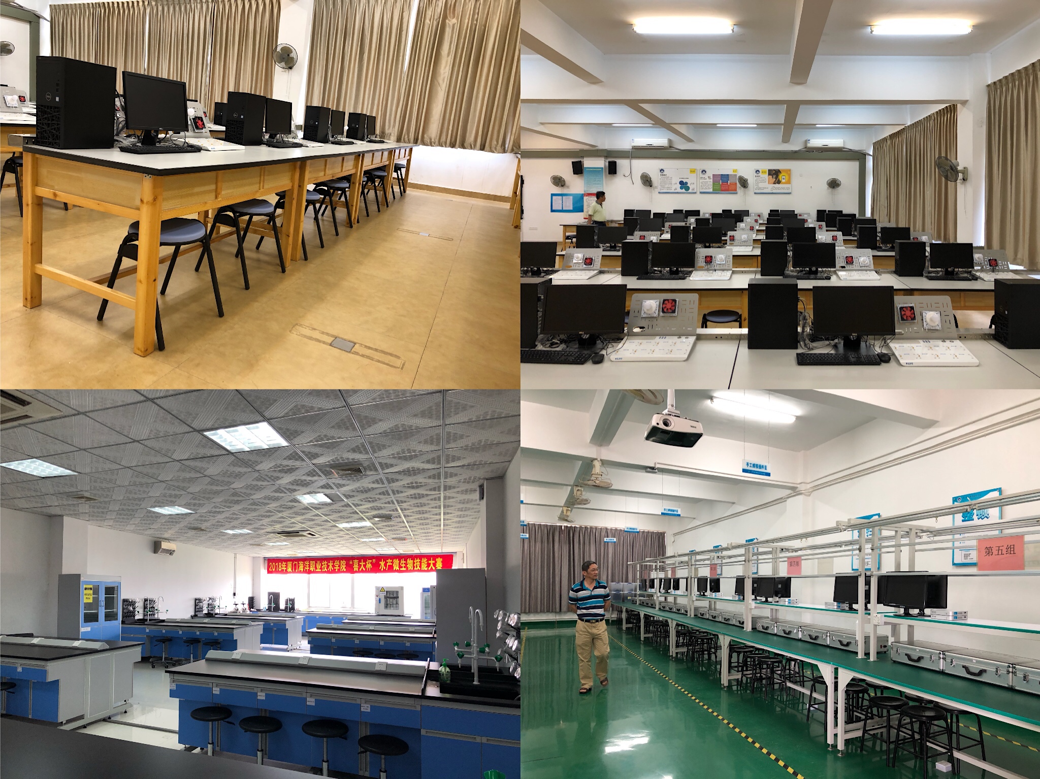 汇报会结束后,考核小组对于各系提供的样板实训室以及制定抽查的13间实训室进行了现场检查。生物技术系、机电工程系、信息技术系分列考评结果前三名。