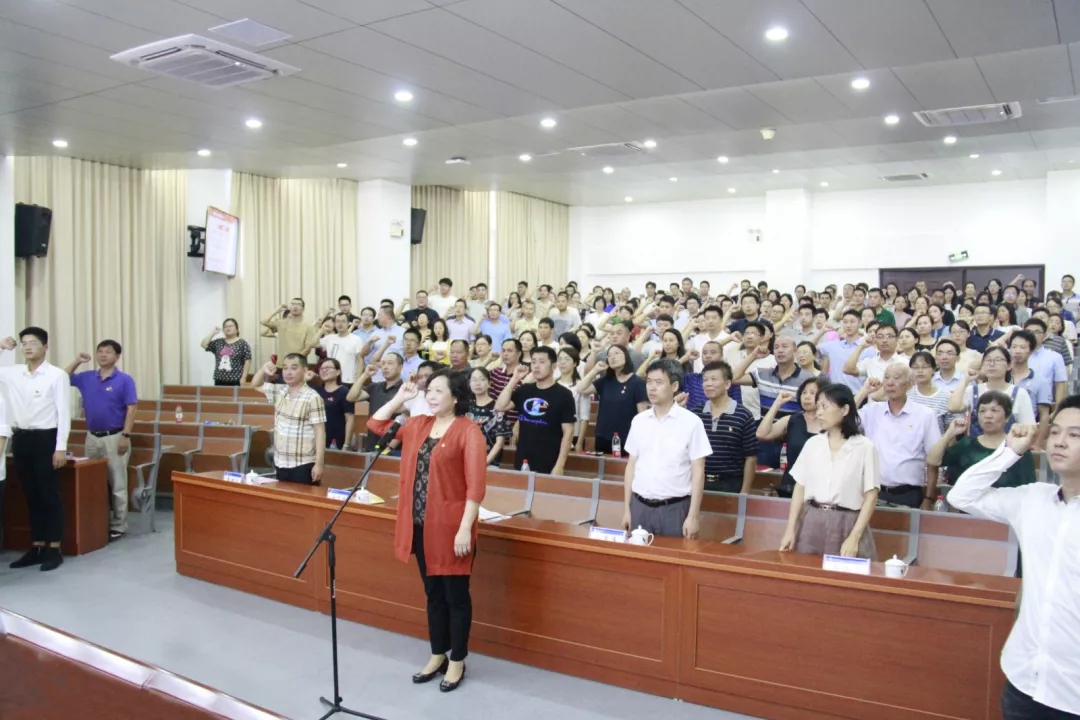 在党委书记陈苏丽的领誓下,全体党员面向党旗,举起右拳,庄严宣誓:我志愿加入中国共产党,拥护党的纲领,遵守党的章程,履行党员义务,执行党的决定,严守党的纪律,保守党的秘密,对党忠诚,积极工作,为共产主义奋斗终身,随时准备为党和人民牺牲一切,永不叛党!