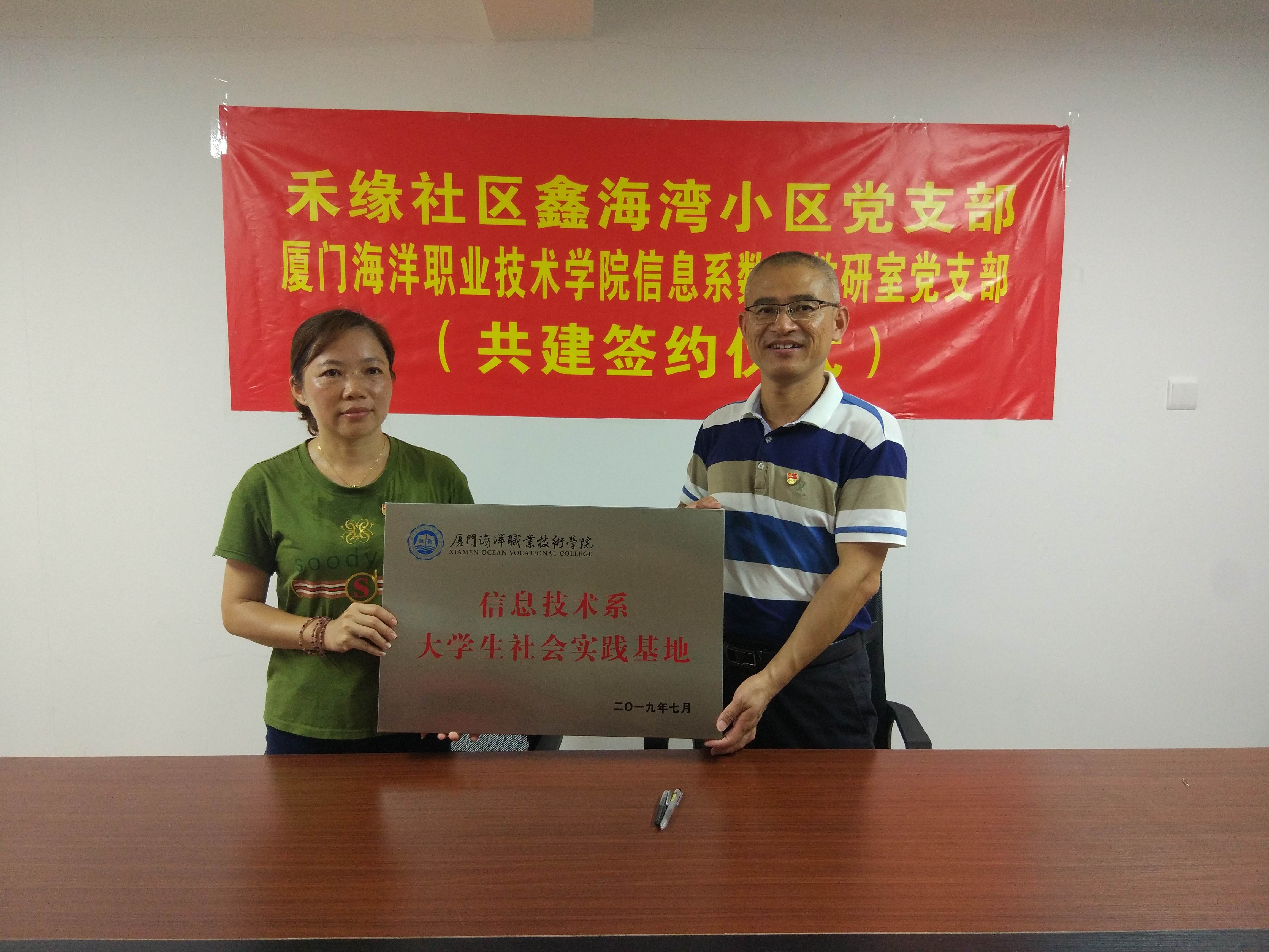 当日数媒教研室党支部与鑫海湾小区党支部开展“结对共建聚合力,固本强基明初心”签约共建活动,同时授予其“厦门海洋职业技术学院信息技术系大学生社会实践基地”牌匾。这是数媒教研室党支部在半年前与禾缘社区党委签约共建的基础上,再次下沉服务、对接小区,引导师生走进社区,服务群众,走与实践相结合的成才之路,帮助大学生在实践中受教育、长才干、做贡献,培养“知识、能力、素质”全面发展的高素质、应用型、创新型人才,为推动人才振兴、文化振兴、生态振兴贡献力量。