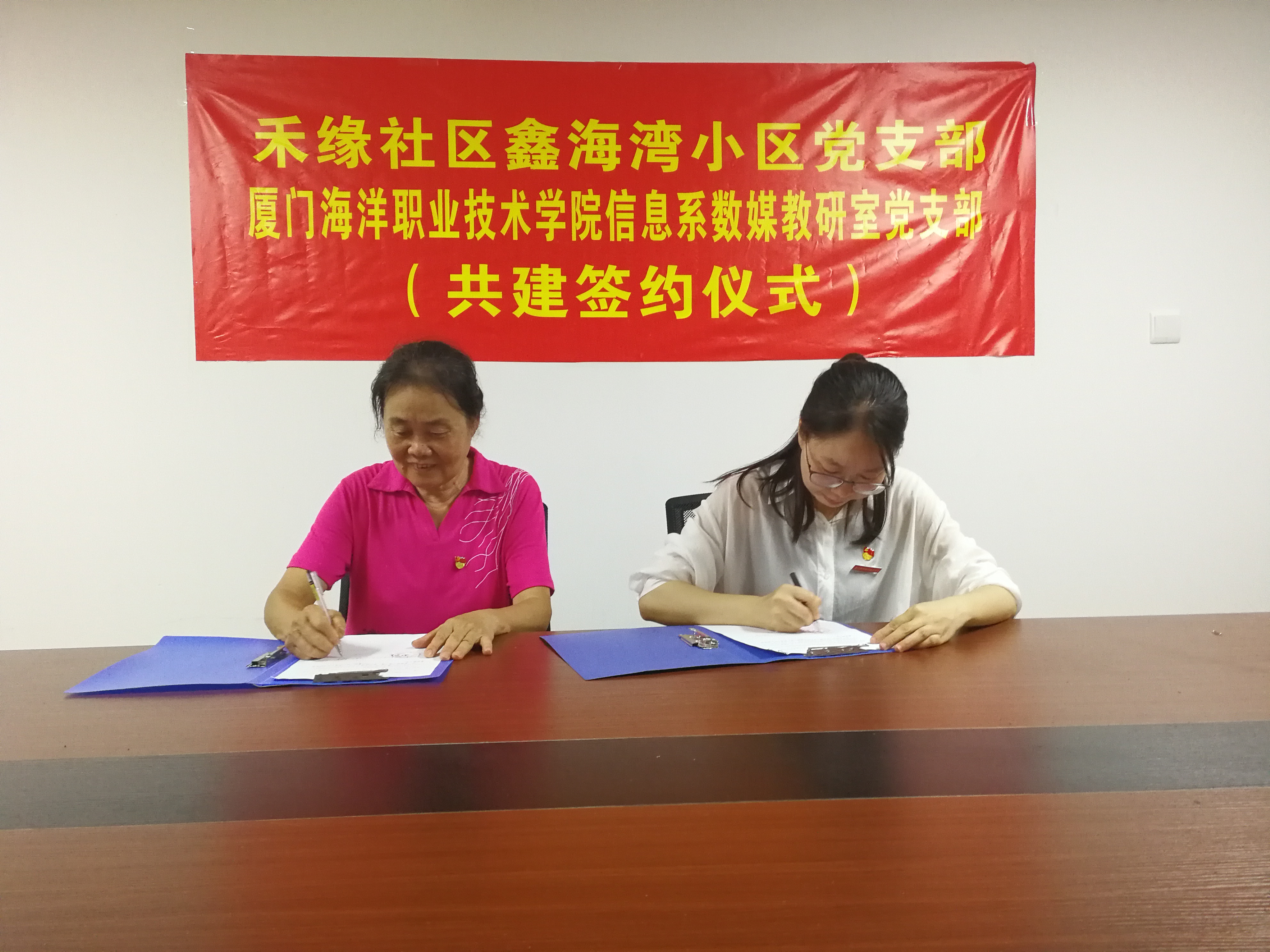喜迎建党98周年,走进社区作奉献。签约共建活动为数媒教研室党支部搭建了利用专业优势服务社区、奉献社会的良好平台,他们将充分发挥党支部的战斗堡垒作用和党员先锋模范作用,助力美丽厦门建设和省级示范性现代职业院校创建。
