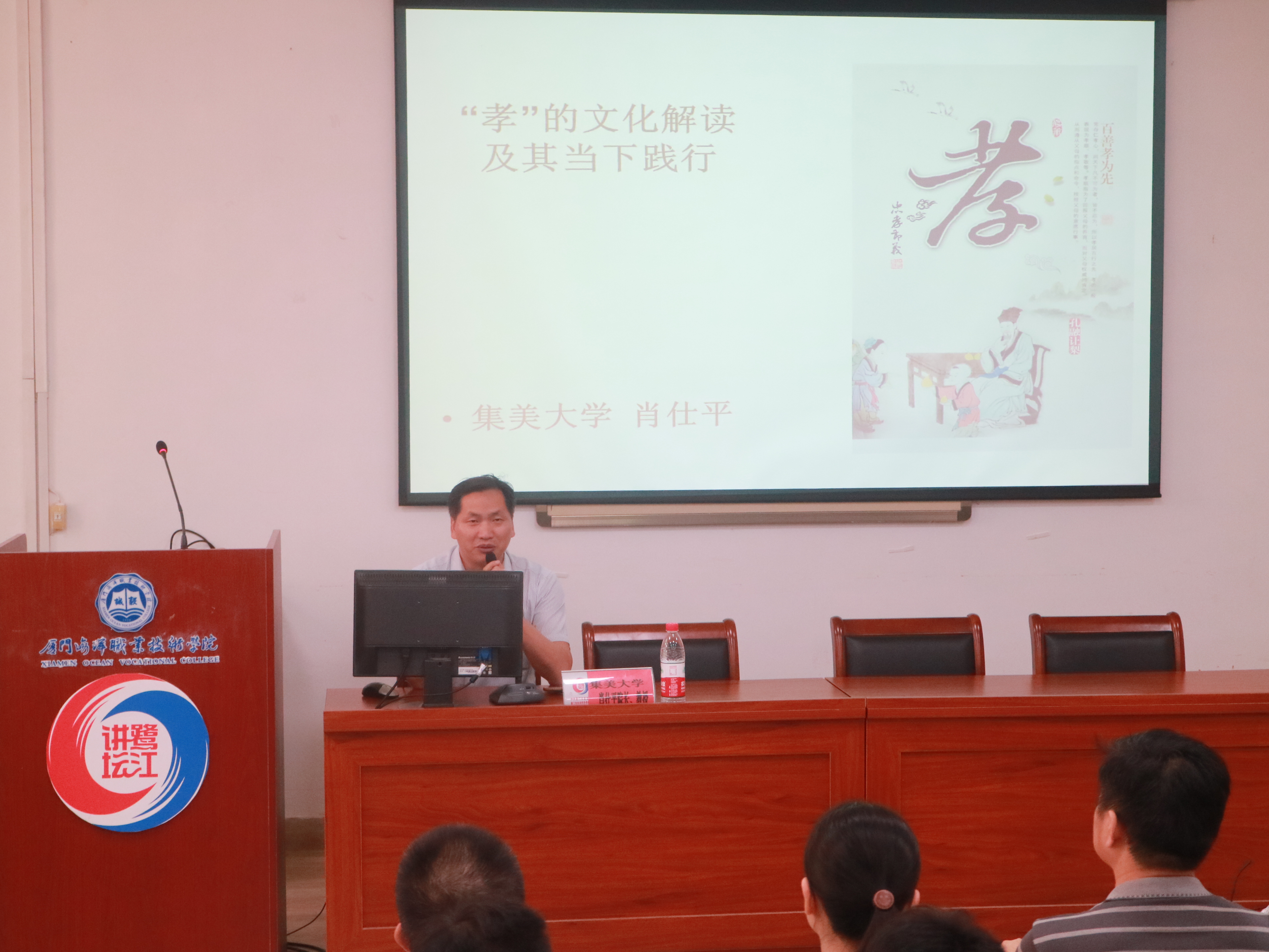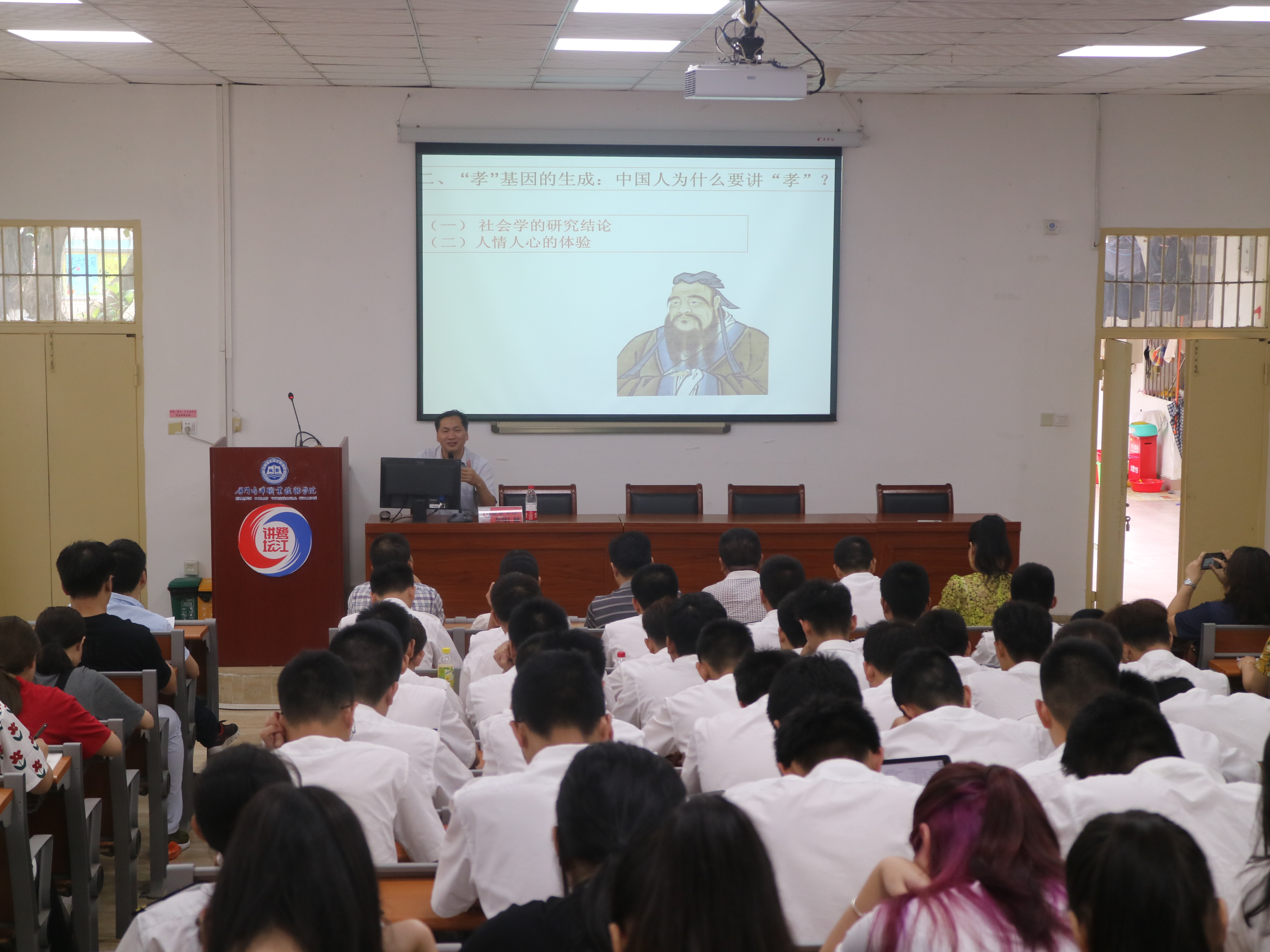 本场讲座是学院传统文化进校园系列活动之一,由学院主办、人事处教师发展中心、团委承办。通过传统文化教育,让学院师生自觉成为孝道的传播者和践行者,让身边有更多更温暖的孝老爱亲的行动和典范,有更多和美幸福的家庭。