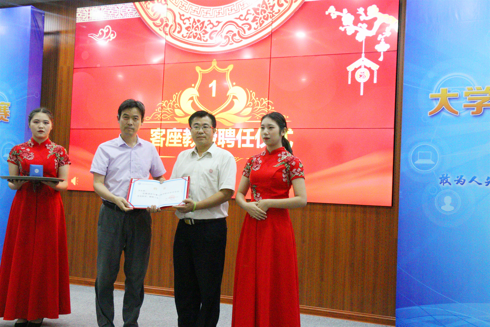 6月18日下午,我院第五届“互联网+”大学生创新创业大赛决赛暨客座教授聘任仪式在翔安校区隆重举行。学院院长陈昌萍为校友汤水源颁发客座教授聘书。党委副书记汤忠民、副院长马国玄、厦门南方海洋研究中心秘书处综合部副主任田中标出席并观看比赛。