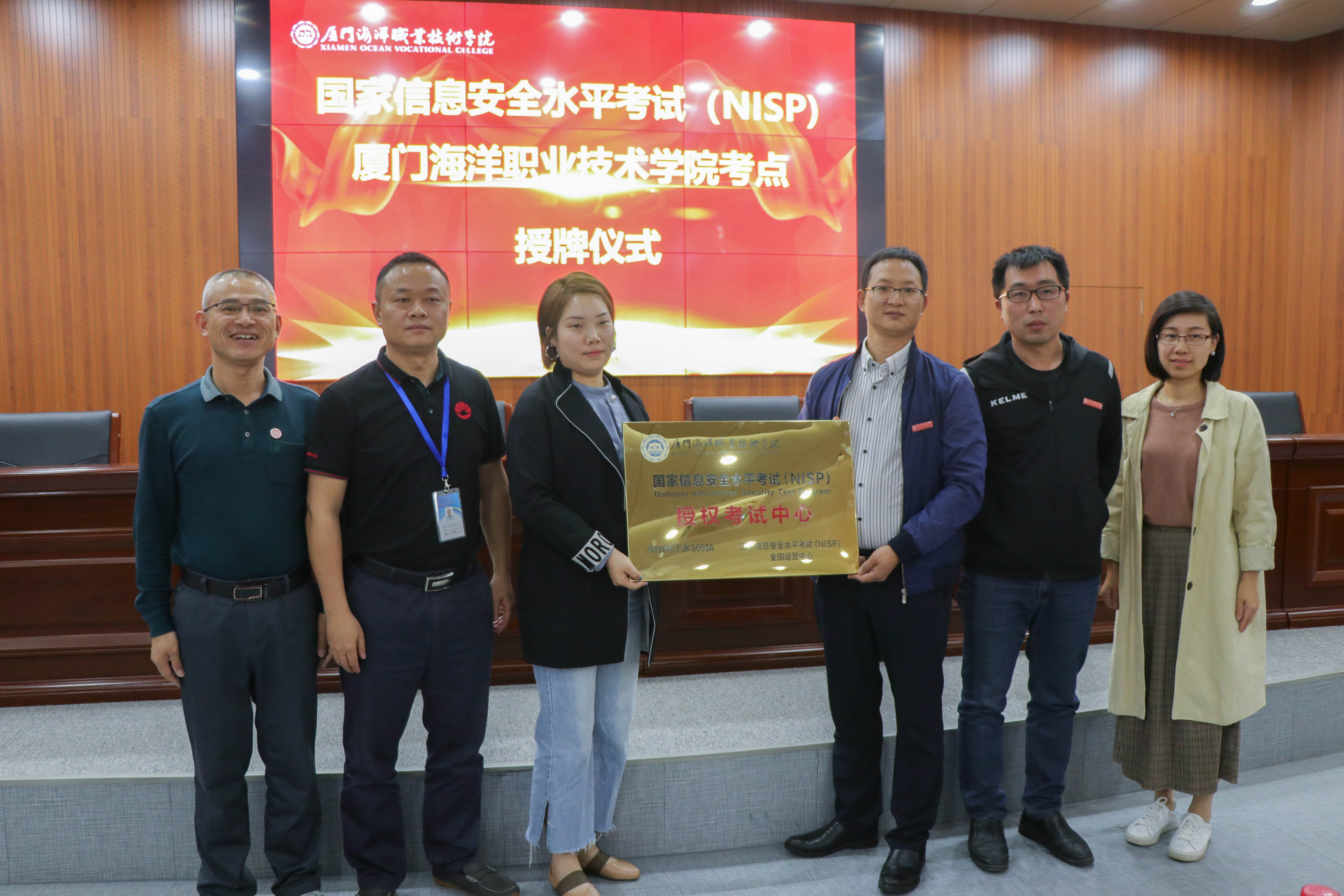 福建经联网络技术有限公司总经理助理黄喆向我院成教部主任刘秋林授牌。我院成为厦门首个获得NISP考点授牌的高校。