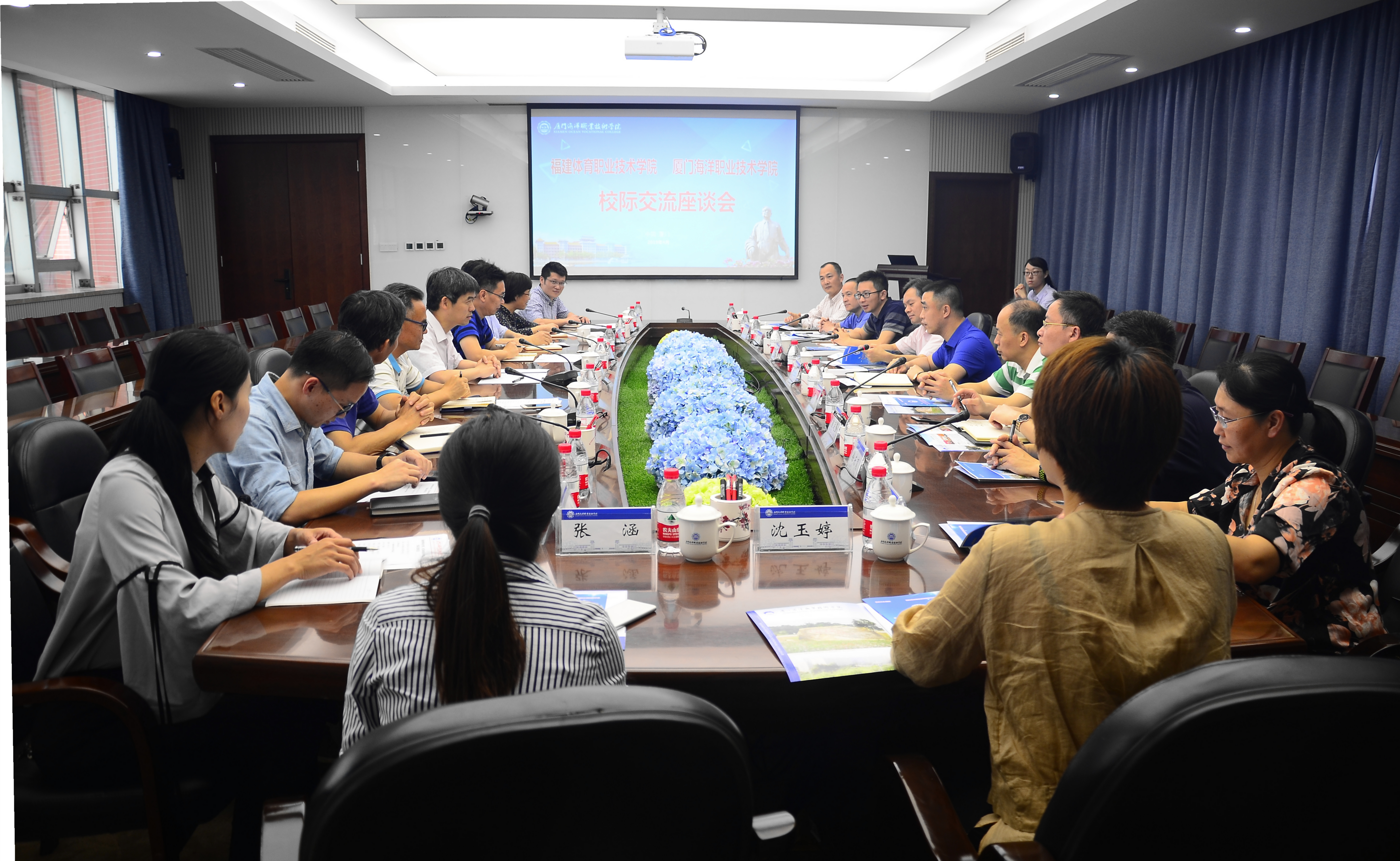 陈昌萍对董劲松一行的到访表示热烈欢迎,并概括介绍学院办学历史和基本情况,表示我院与福建省体育职业技术学院在体育竞技等方面长期保持良好的交流互动关系,希望双方进一步深化交流合作,互相促进,共同发展。董劲松介绍福建省体育职业技术学院基本情况和办学特色,希望双方在师资交流等方面拓宽合作领域。双方还围绕大学生创新创业、校企合作等主题开展了深入探讨,并开展对口部门交流。