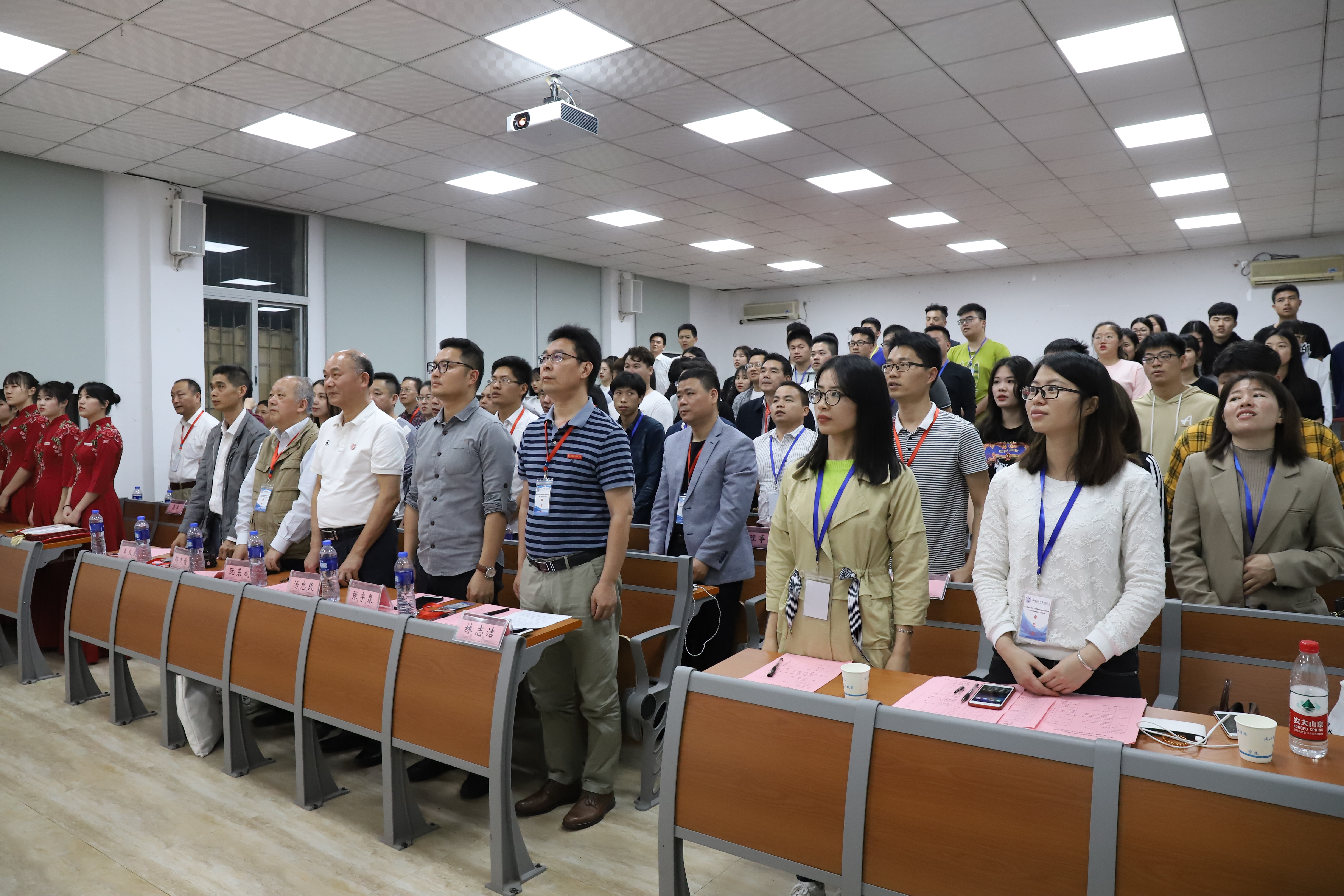 航海技术系党总支书记、校友会航海技术系分会会长林志洁作工作报告与财务报告,并同校友会副会长兼秘书长阮基成向增补副秘书长、理事颁发聘书。