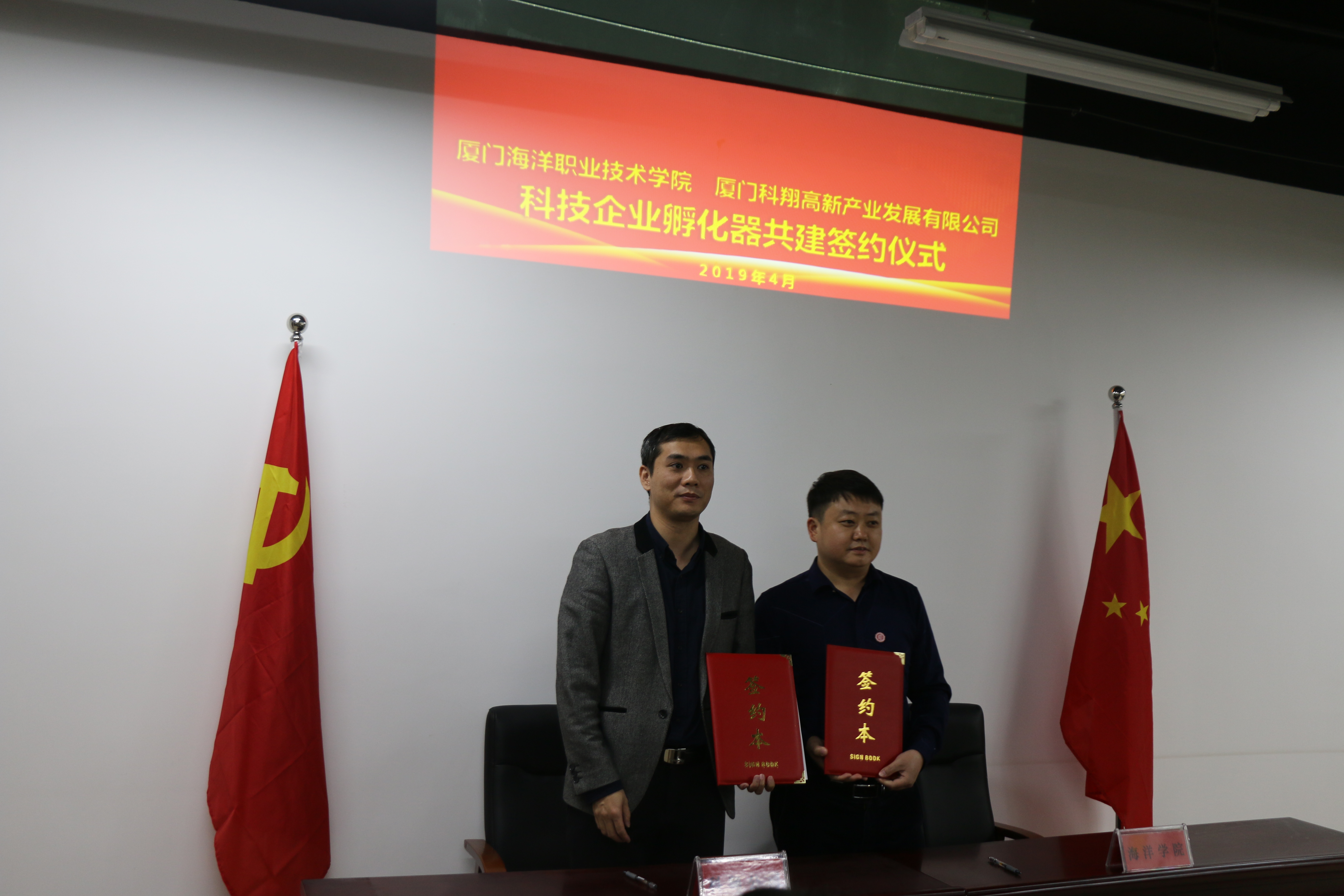 4月12日,学院党委副书记汤忠民、学生处处长赵胜东等一行6人前往厦门科翔高新产业发展有限公司,与3家翔安企业签署党建共建、校企共建暨科技企业孵化器共建合作协议。