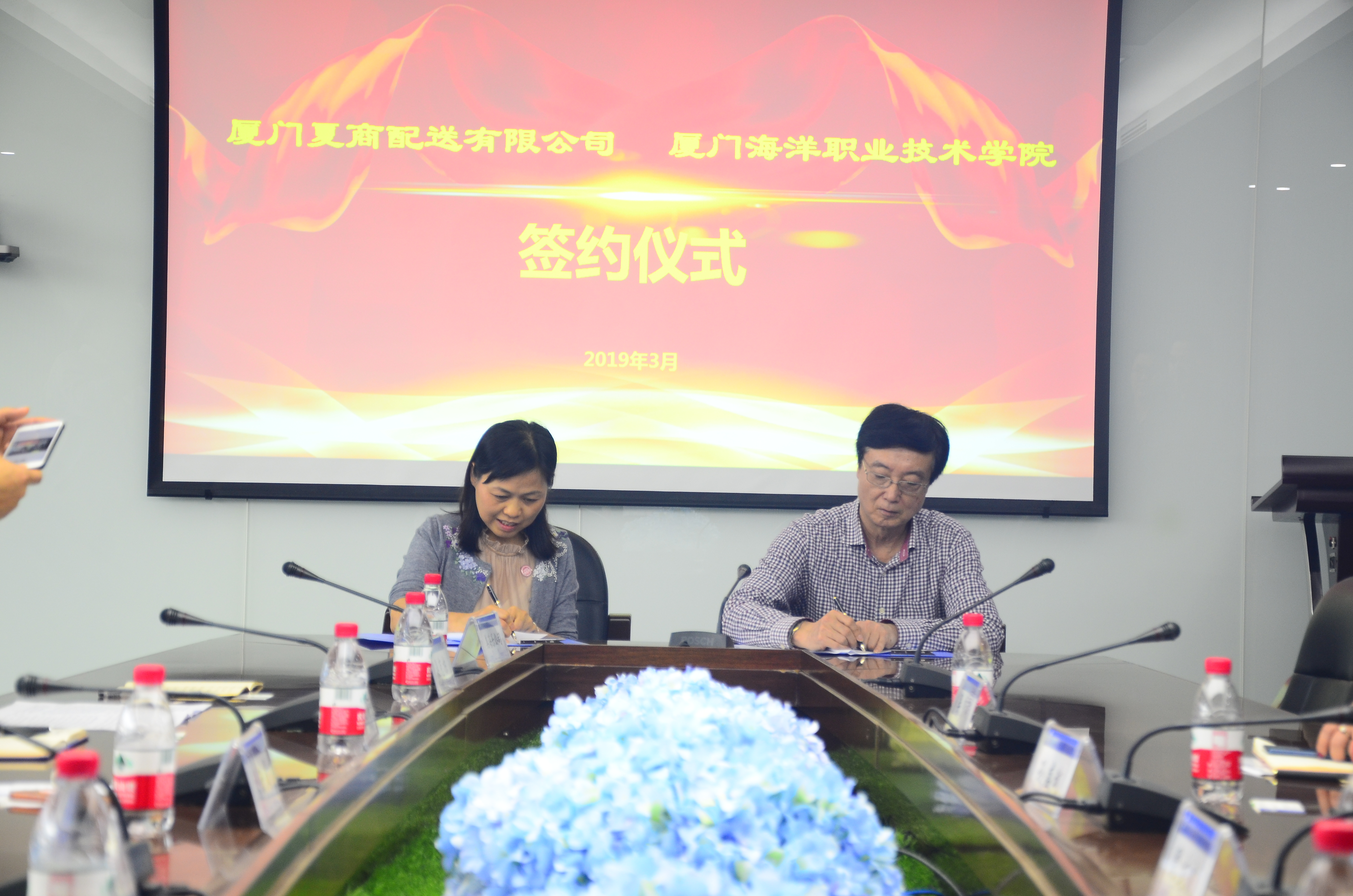 3月21日下午,我院副院长余云翼与厦门夏商配送有限公司总经理孙盛斌在翔安校区签订食堂食品原材料定点采购合作框架协议。学院党委委员、后勤管理处处长吴云辉,厦门夏商配送有限公司常务副总经理周文波等出席签约仪式。签约仪式由后勤管理处副处长赵平主持。