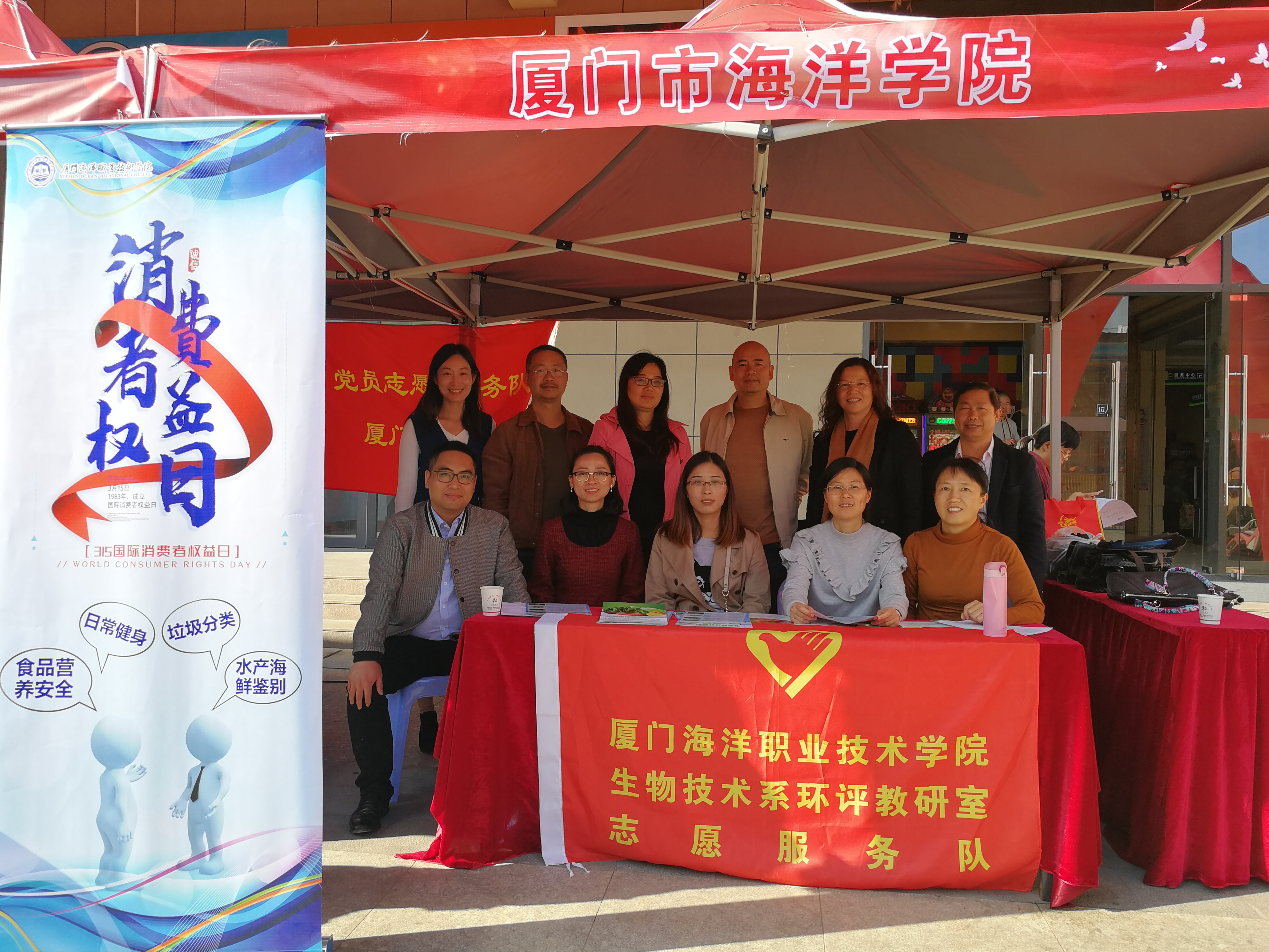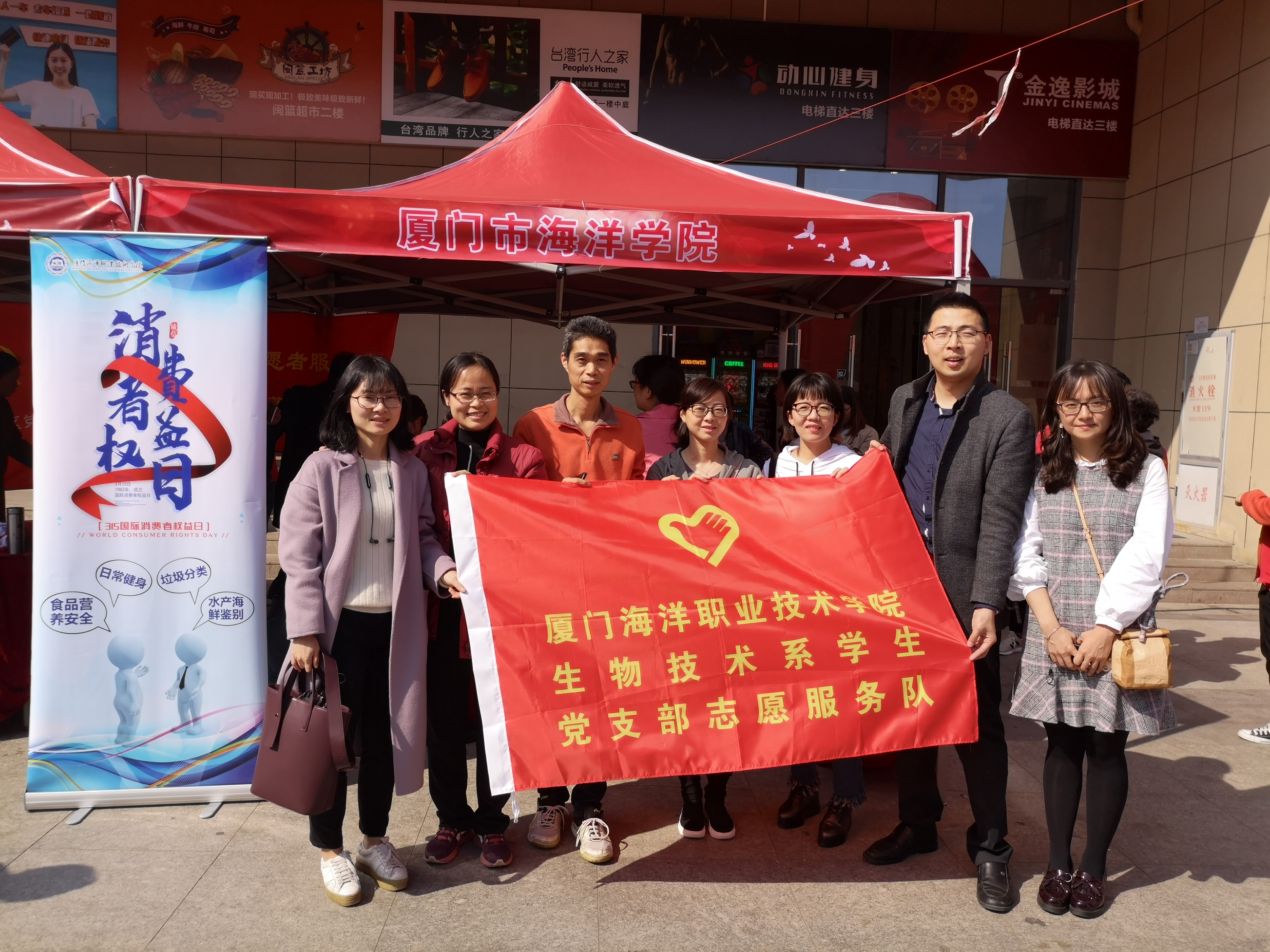 3月12日下午,我院生物技术系养殖专业志愿服务队、食品专业志愿服务队、青马社志愿服务队、环评专业志愿服务队共40多名师生前往闽蓝城市广场,参加翔安区2019年“3.15”主题宣传进社区活动。